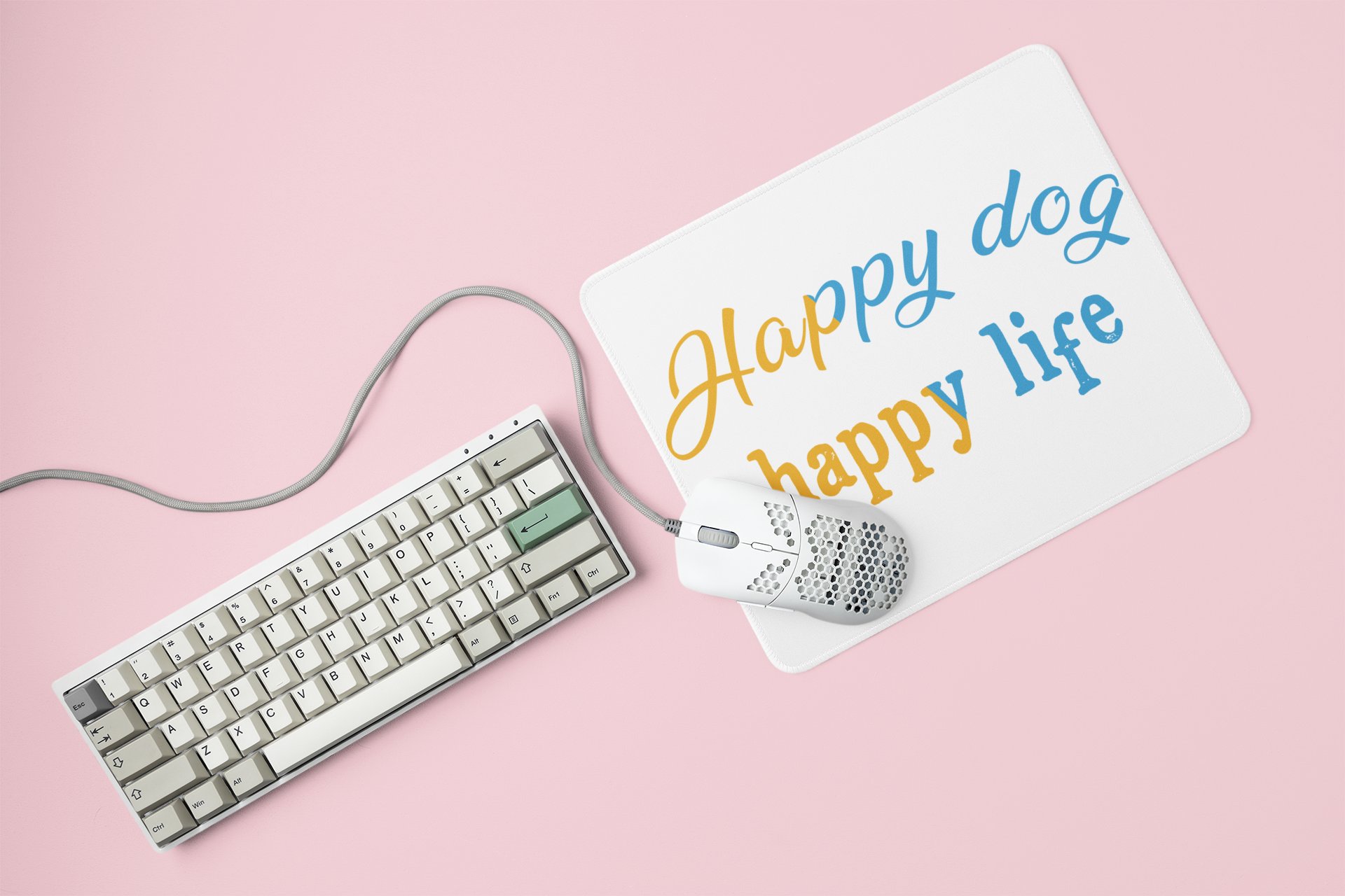 Happy dog happy life yellow and blue text -printed Mousepads for pet lovers