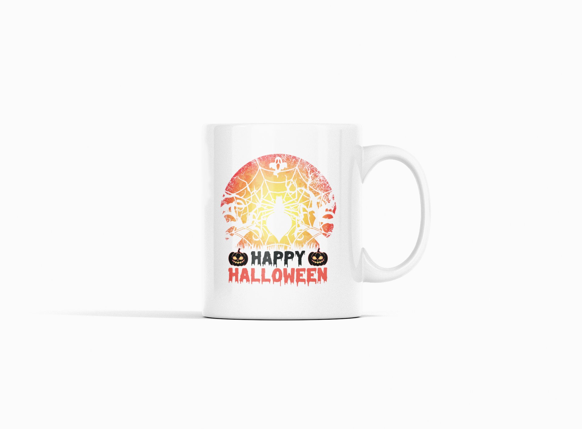 Happy Halloween text -Spider Web-Halloween Themed Printed Coffee Mugs