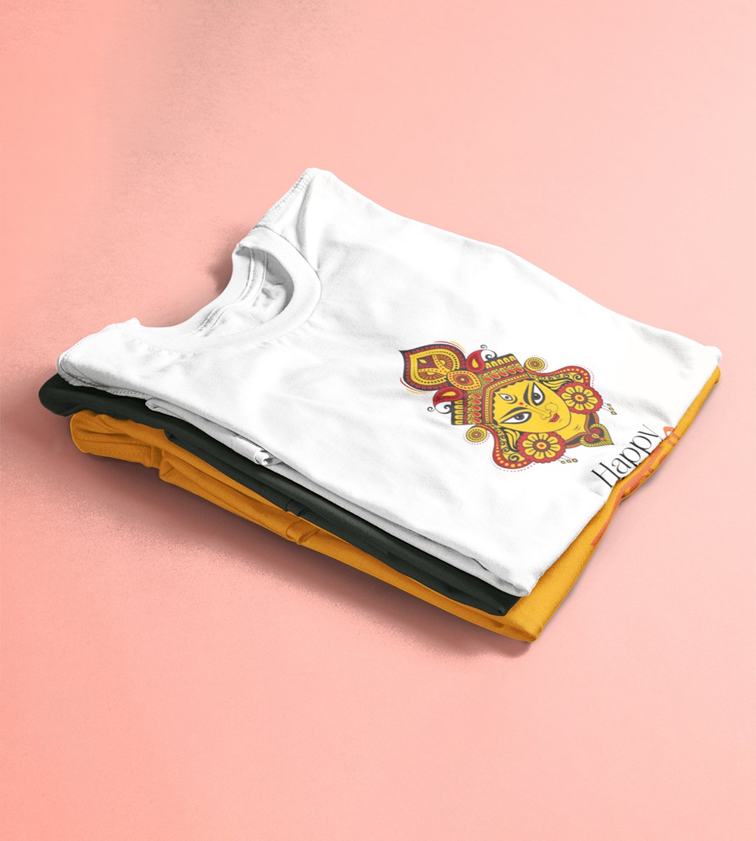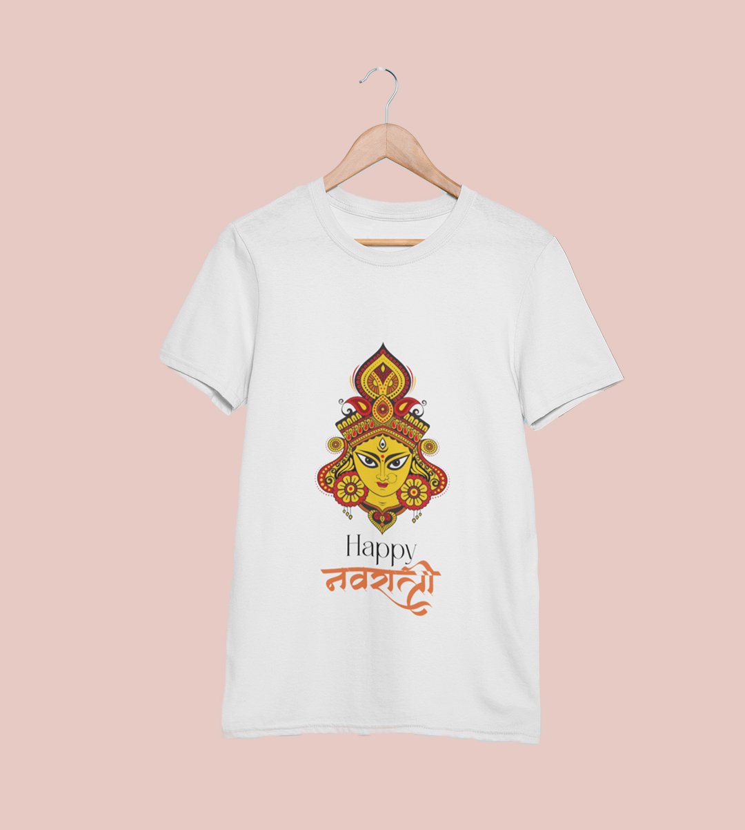 Navratri is a very auspicious festival for hindus. It takes place at the beginning of October and sometimes September. Enjoy the 9 days of festivities with full zeal and make yourself submerged in the love of Maa Durga. Navratri is also known as Durga Puja. And with this Tees, you can shine like a star during this festive season with our navratri themed cotton half sleeved Tshirts. You can pair our t-shirts with trousers and denim of your choice and make it a weekday smart casual or weekend wear. This is durable. This tshirt is smooth and soft which makes you comfortable to wear during all seasons. The printing in it is durable and odourless. It has five sizes, S,M,L,XL,XXL. The Tshirt colour is intact even after repeated washes. It can be kept in your wardrobe and hangers. Please avoid washing mashine to clean this Tee, it may affect the print. Hand wash only. We have brought you many navratri related designs printed on our different colour Tshirts to choose from. Grab it now.