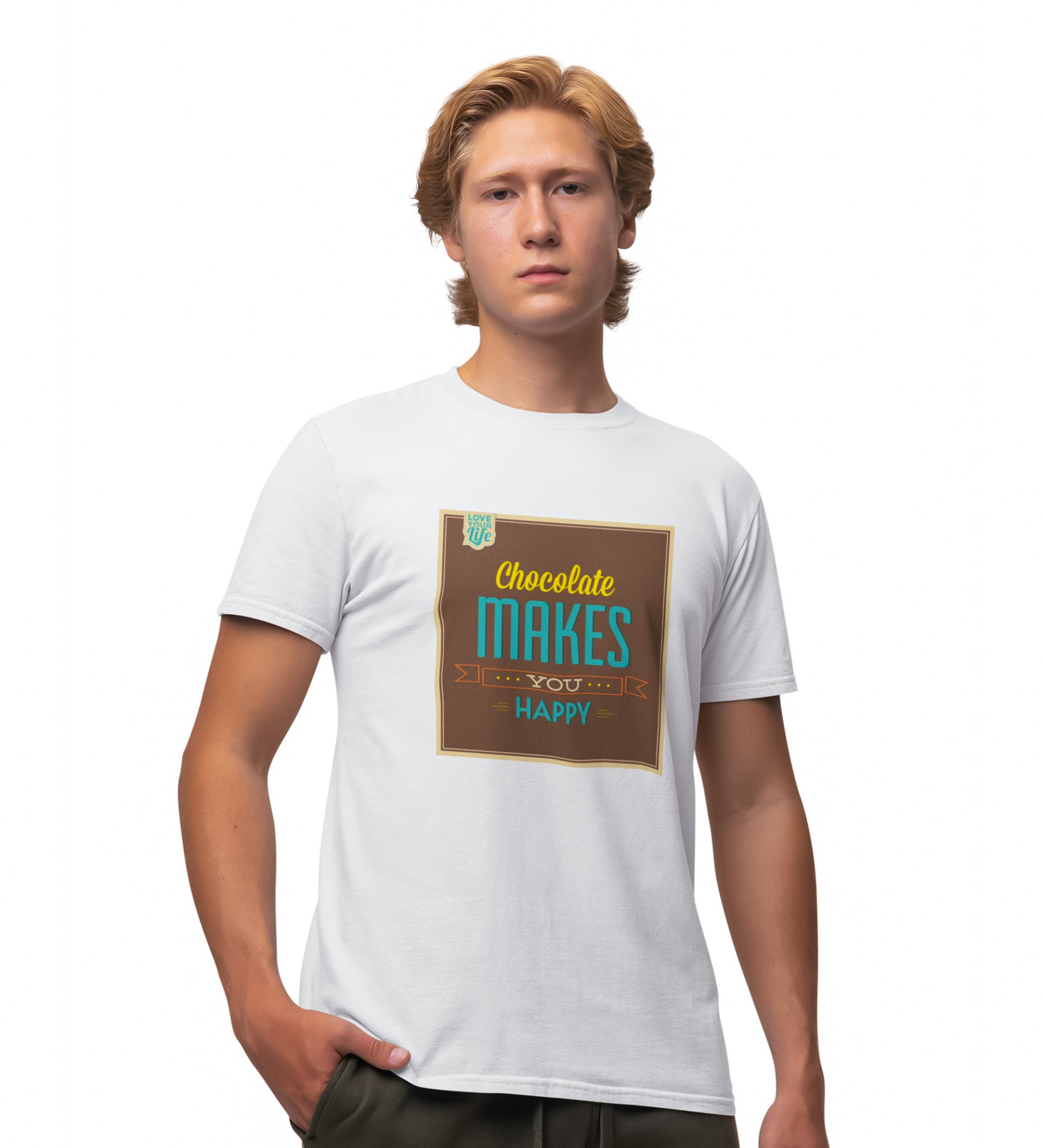 Chocolate Is My Happiness White Round Neck Cotton Half Sleeved Men's T-Shirt with Printed Graphics