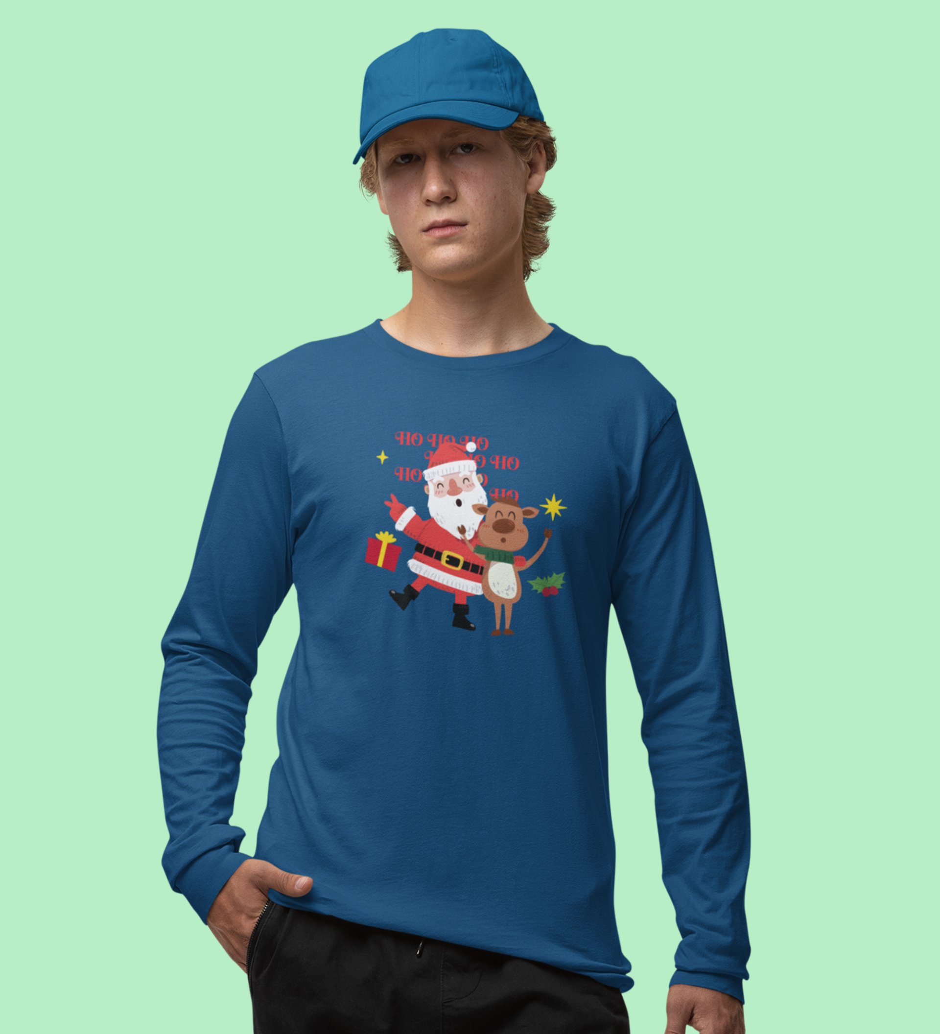 Happy Santa: Best DesignerFull Sleeve T-shirt Blue Best Gift For Kids