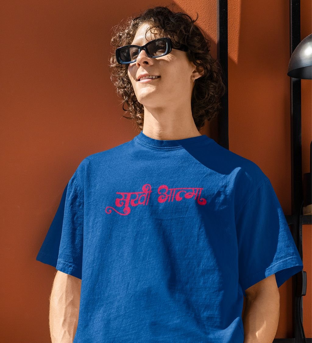 Happy Soul Blue Round Neck Cotton Half Sleeved Men T Shirt with Printed Graphics