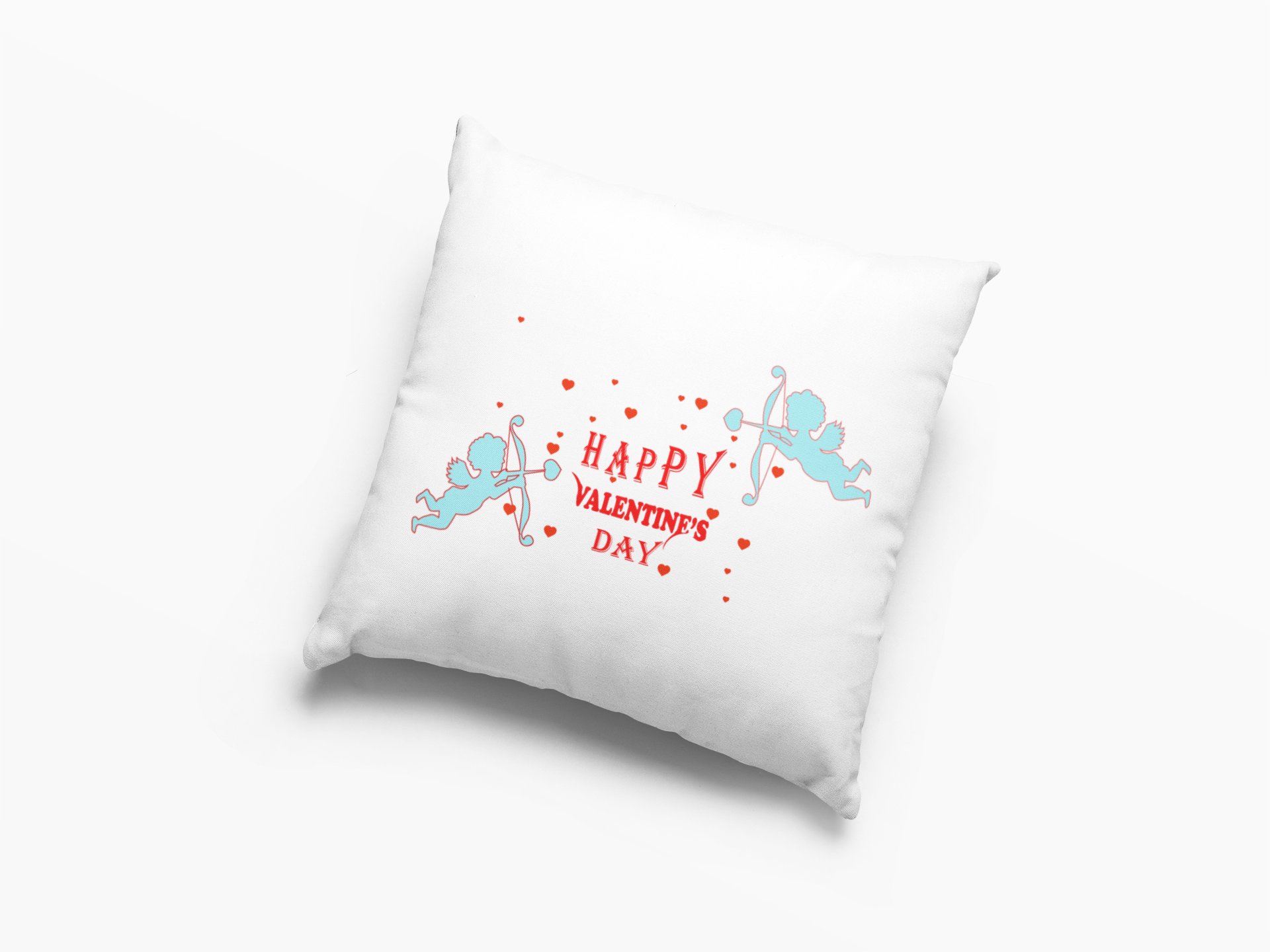 Happy Valentine's Day With Too Cute for Cupid -Printed Pillow Covers For (Pack Of Two)