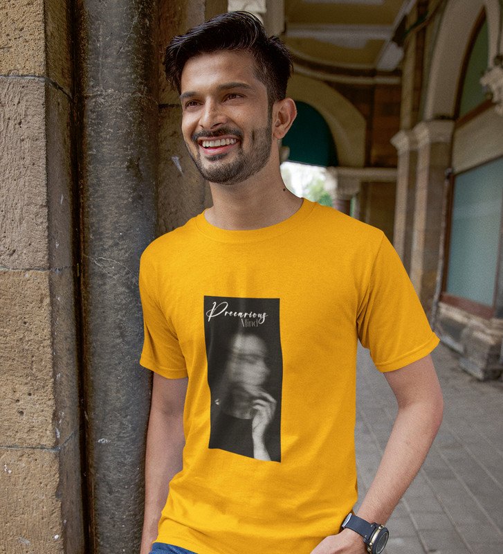 Hazardous Mind, Yellow Express Yourself: Trendy Front Printed Round Neck Tee - Men's Edition