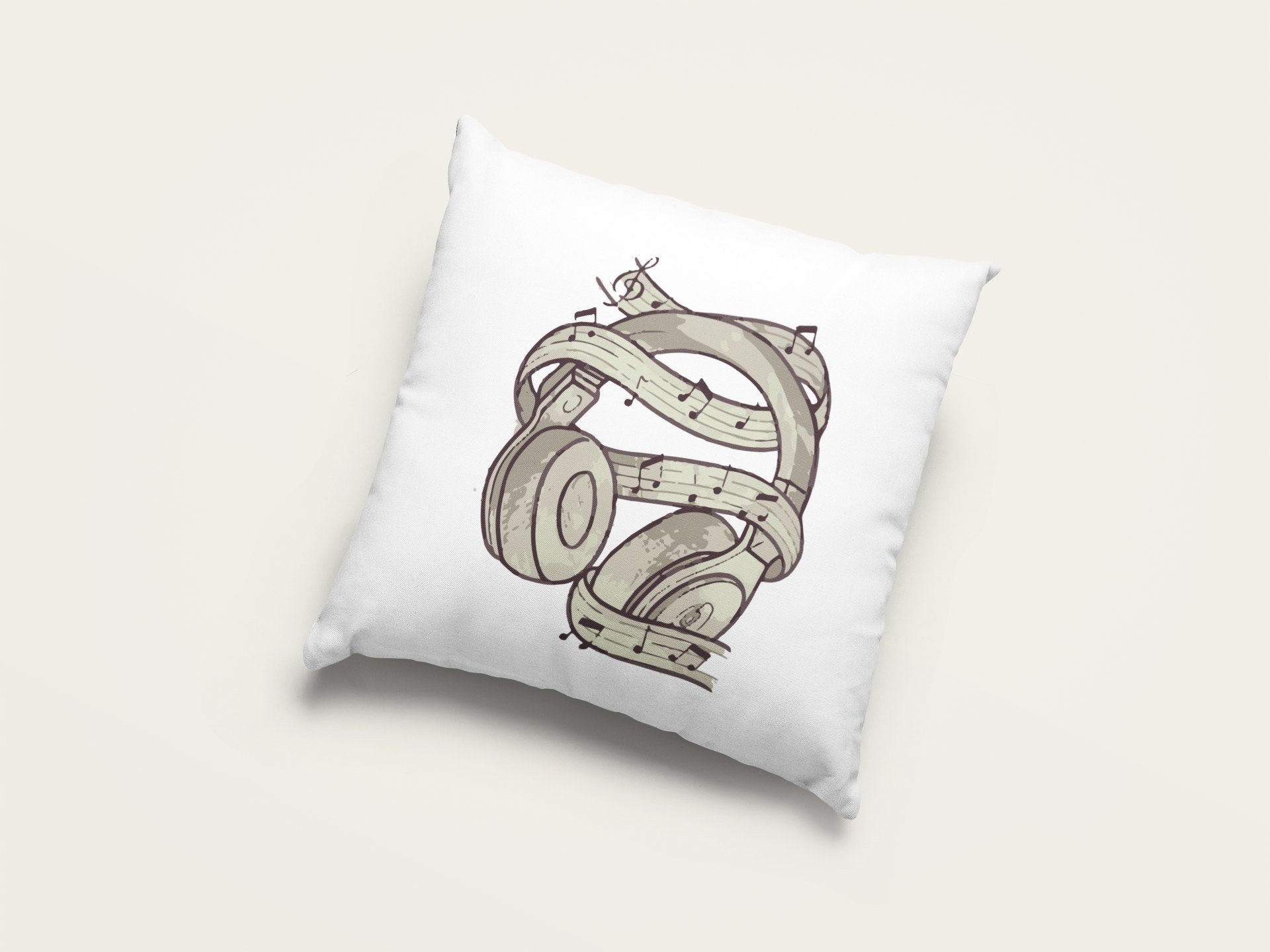 Headphones And music Notes - Special Printed Pillow Covers For Music Lovers(Combo Set of 2)