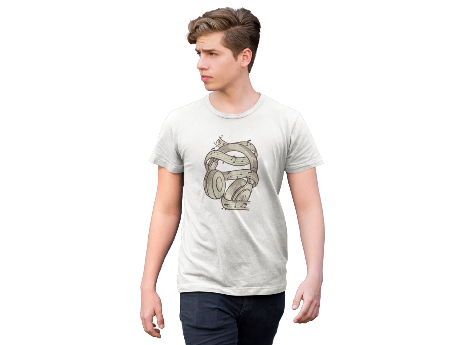 Headphones And music Notes- White - Men's - printed T-shirt - comfortable round neck Cotton