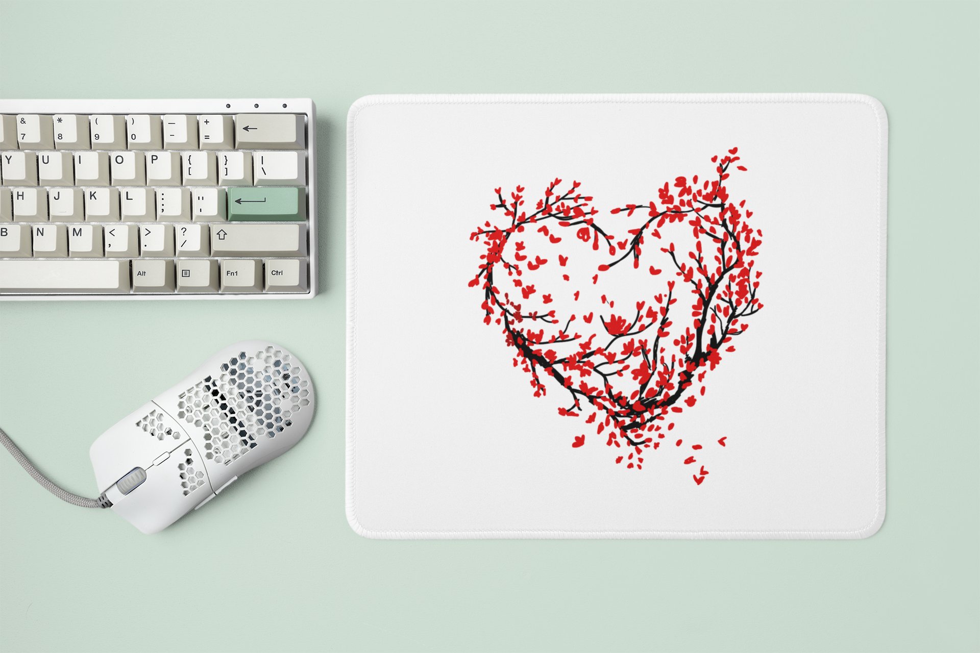 Heart With Flowers And Branches - Designable Printed Mousepads(20cm x 18cm)