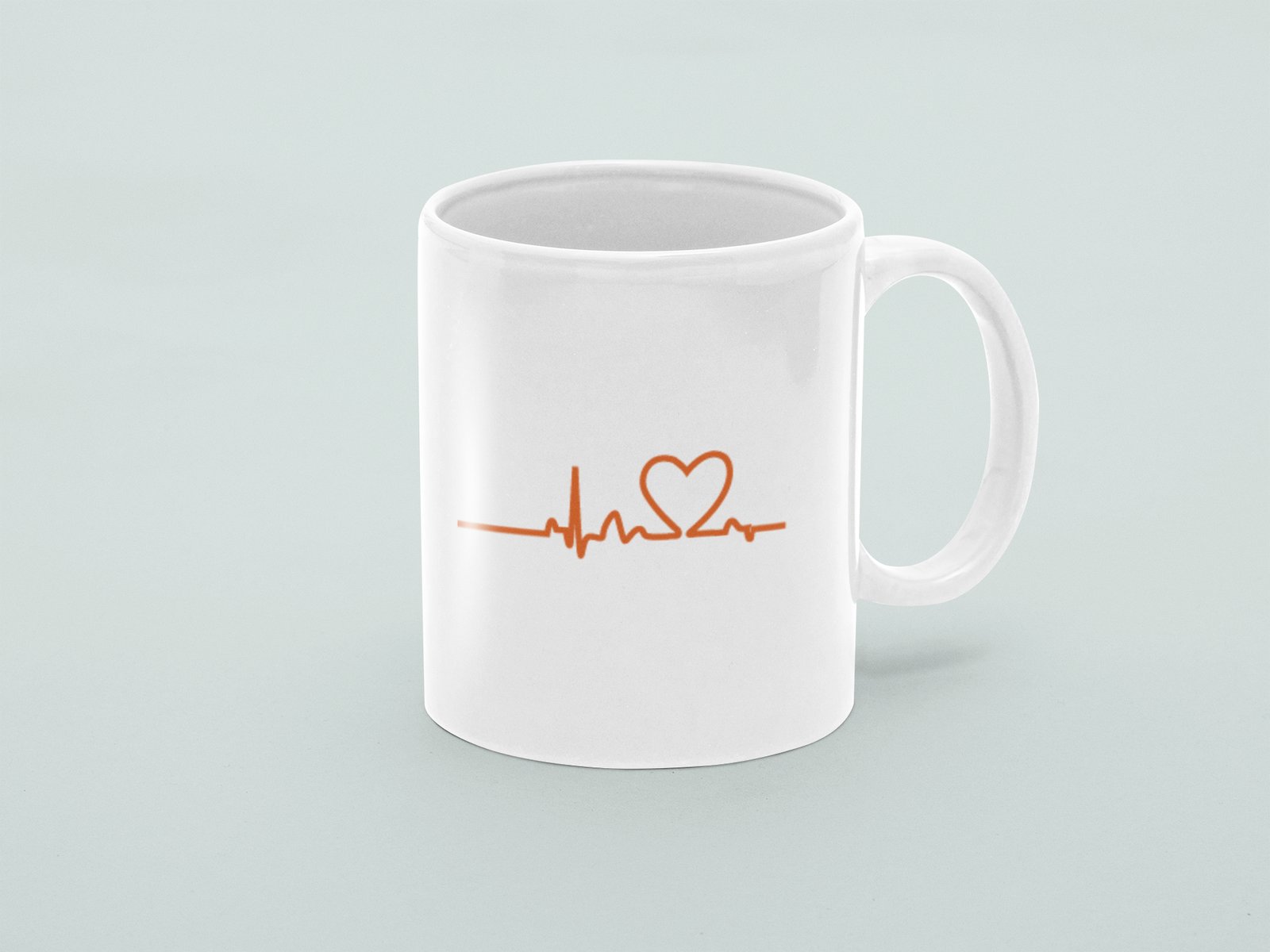Heartbeat line - valentine themed printed ceramic white coffee and tea mugs/ cups