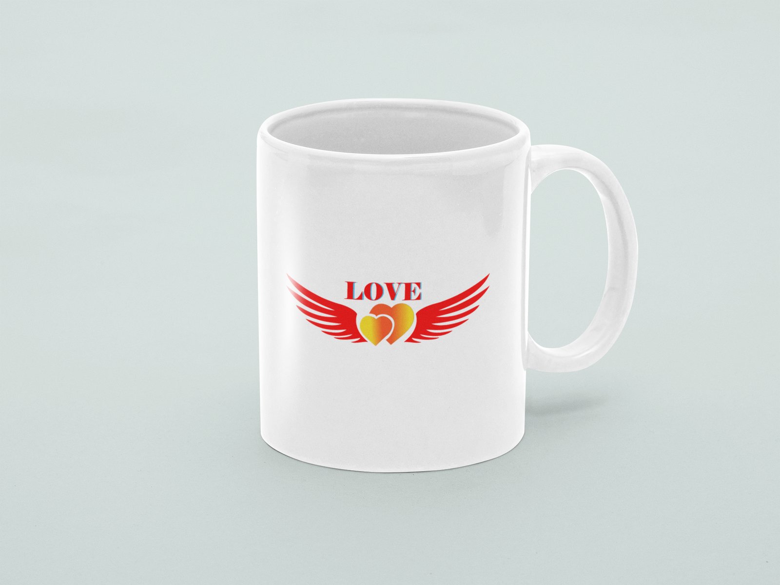 Hearts with Wings - valentine themed printed ceramic white coffee and tea mugs/ cups