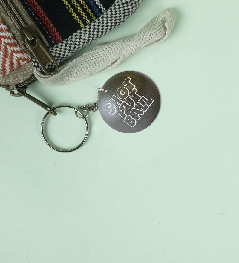 Add a sporty touch to your style with this Pack of 2 Printed Round Keychains. Featuring bold designs inspired by shot put, ping pong, baseball, and volleyball, they