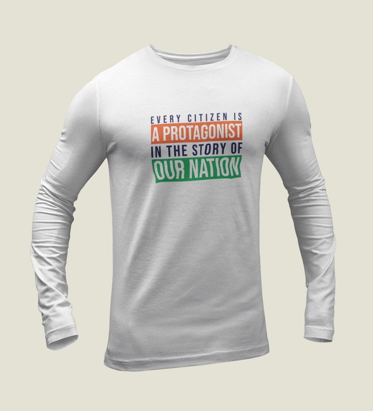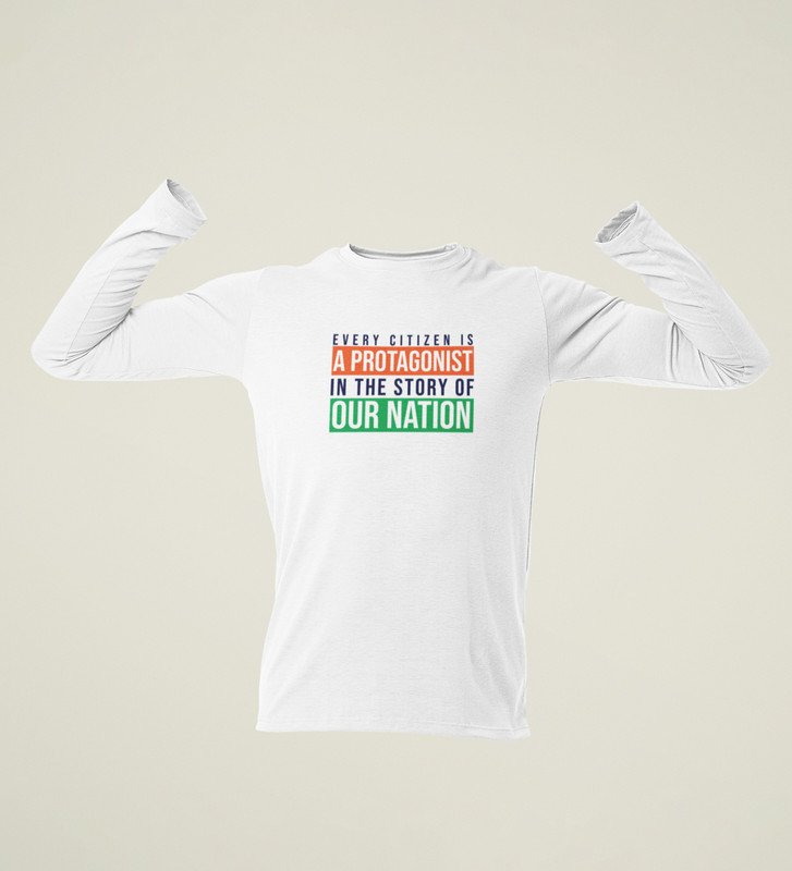 Hero Of The Nation, White Round Neck Printed Full Sleeve T-shirts