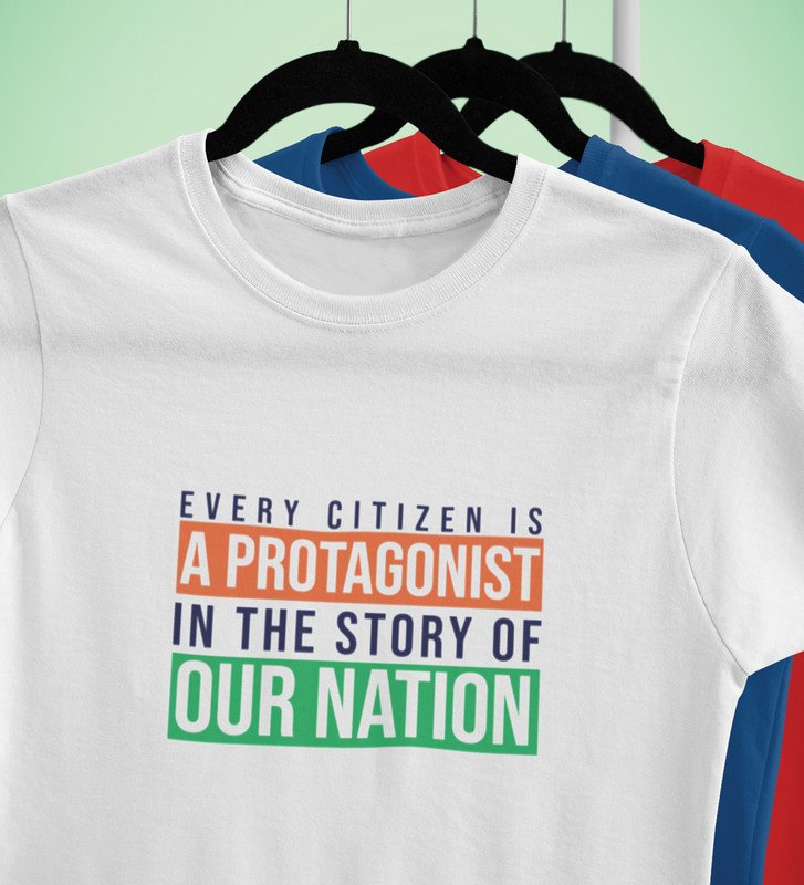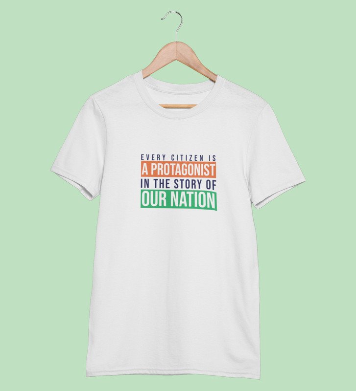 Hero Of The Nation, White Round Neck Printed T-shirts