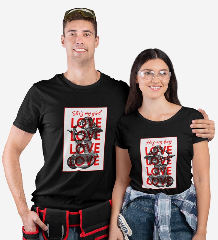 He's My Boy/She's My Girl Printed Couple (Black) T-shirts For Couples