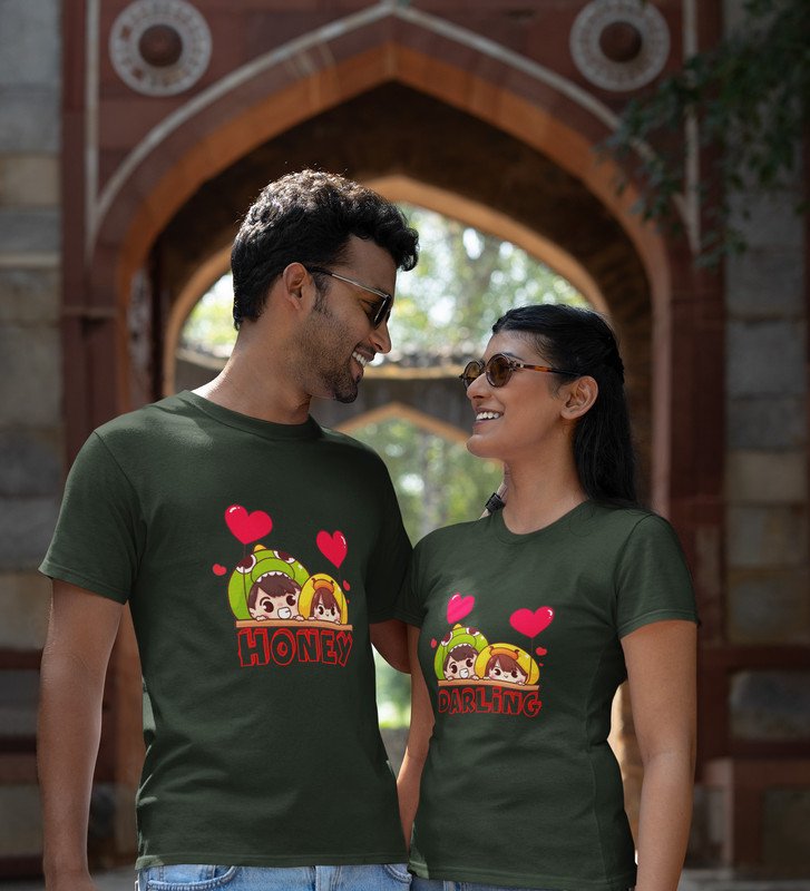His Darling/Hers Honey Printed Couple (green) T-shirts