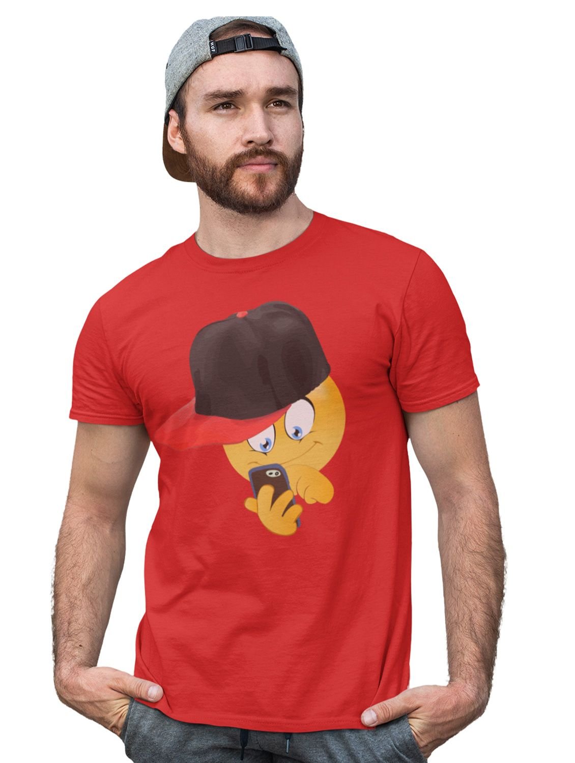 Holding a Mobile Emoji T-shirt (Red) - Clothes for Emoji Lovers - Foremost Gifting Material for Your Friends and Close Ones