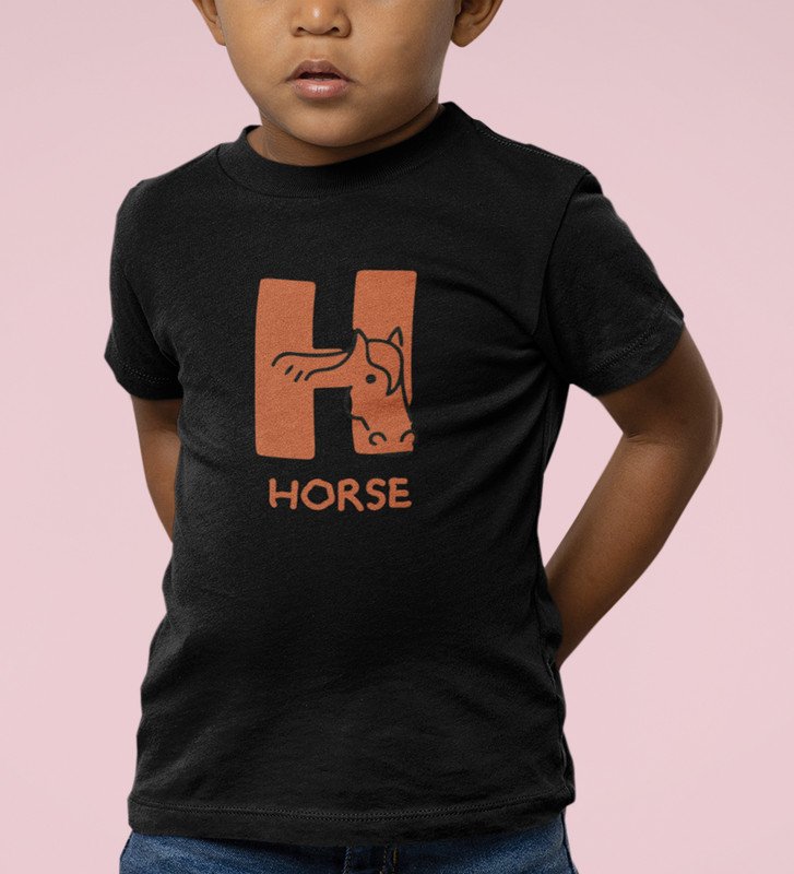 Homely Horse, Boys Round Neck Printed Blended Cotton Tshirt (Black)