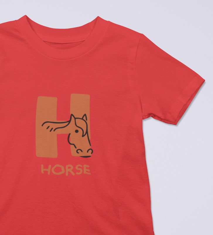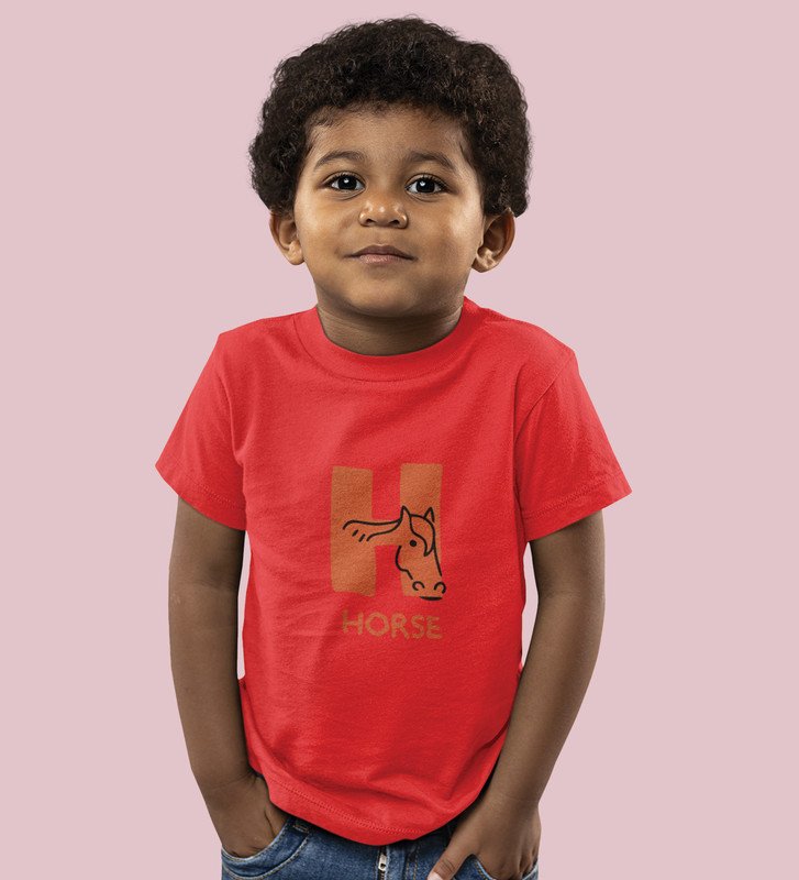 Homely Horse, Boys Round Neck Printed Blended Cotton Tshirt (Red)