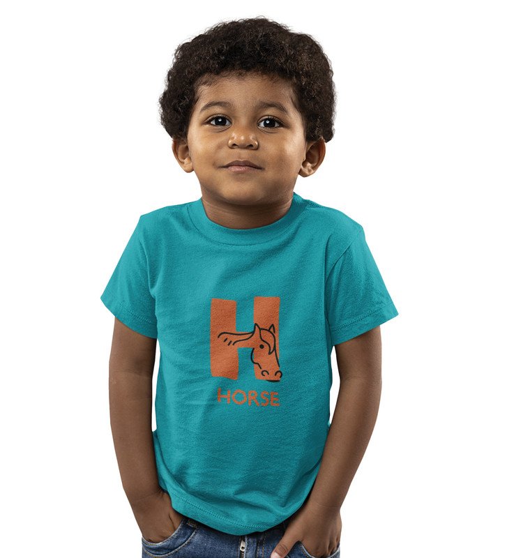 Homely Horse, Boys Round Neck Printed Blended Cotton Tshirt (Teal)