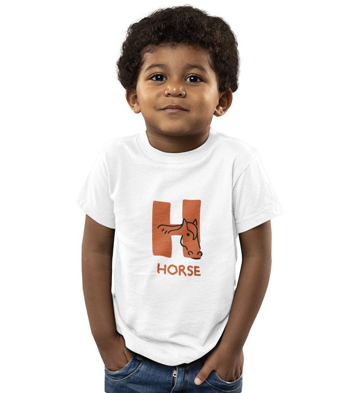 Homely Horse, Boys Round Neck Printed Blended Cotton Tshirt (White)