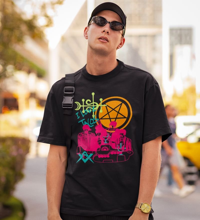Hot Tacos Printed Round Black Neck TShirt for Men