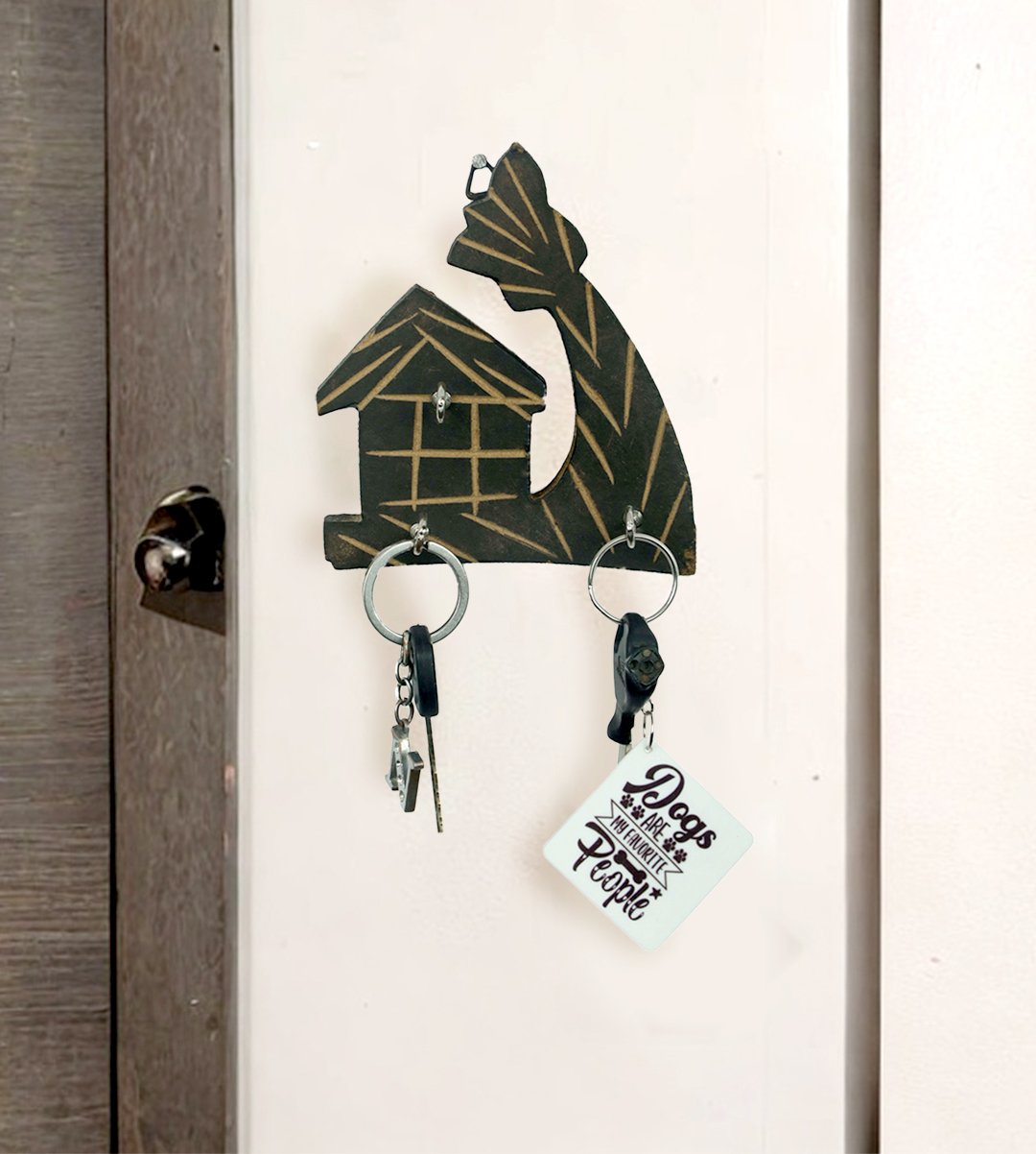 House and tree, wooden hanging keystand / key rack for walls of your home and offices (black)