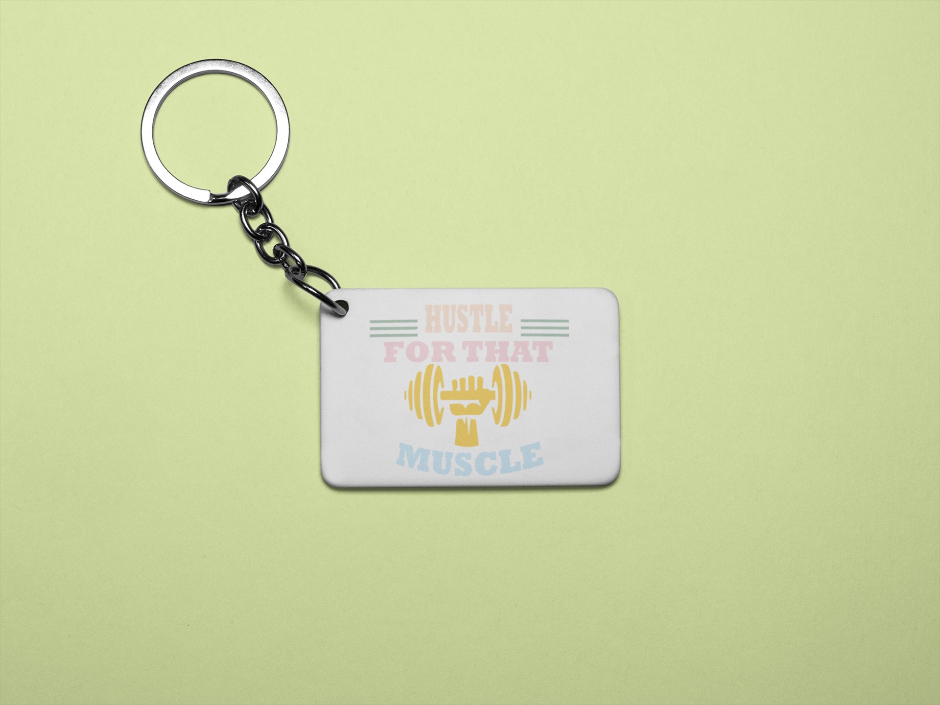 Hustle For That Muscle, (BG Orange, Pink, Yellow and White) - Printed Keychains for gym lovers(Pack of 2)