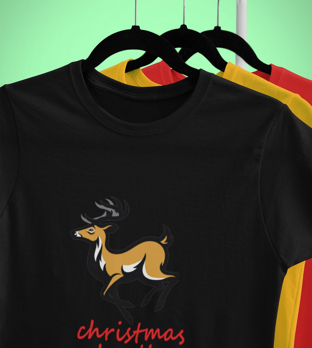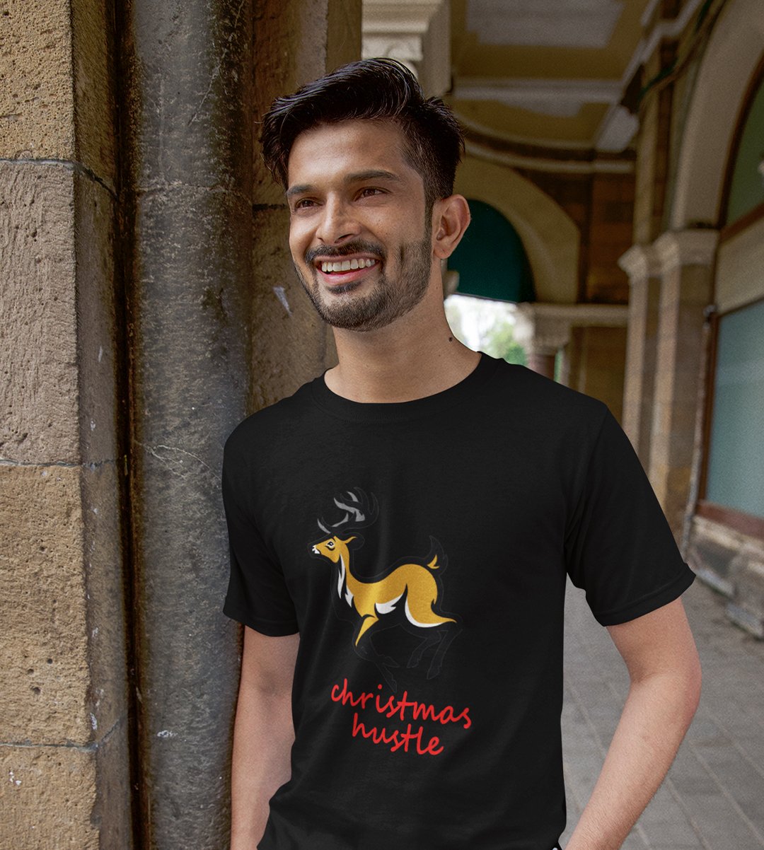 Hustling Reindeer : Funny & Cute Printed T-shirt (Black) Perfect Gift For Secret Santa