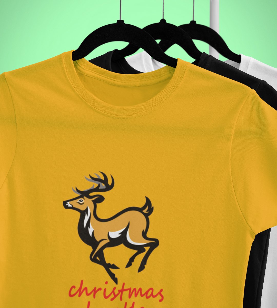 Hustling Reindeer : Funny & Cute Printed T-shirt (Yellow) Perfect Gift For Secret Santa