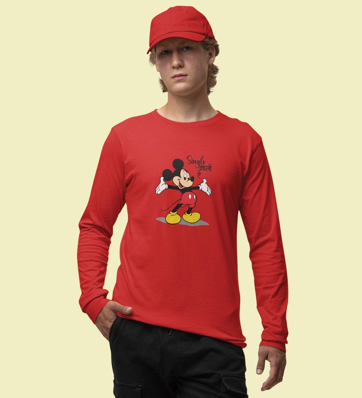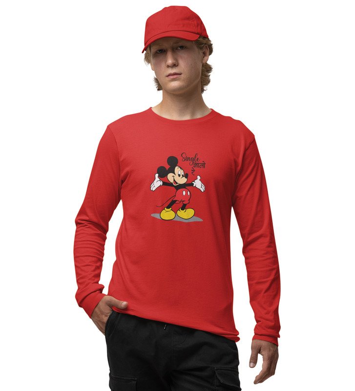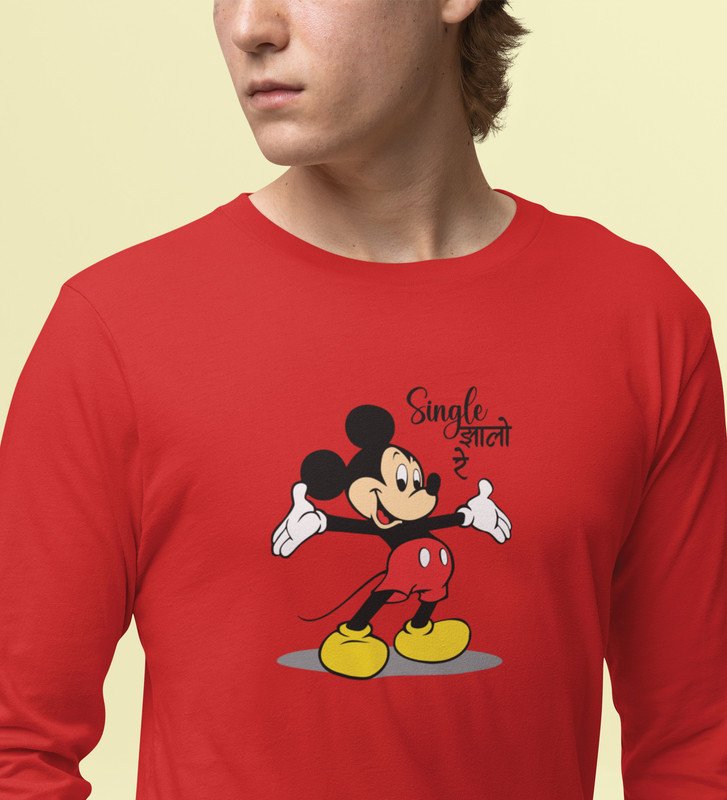 I Am Single Again (red) Full Sleeve T-Shirt For Singles With Print