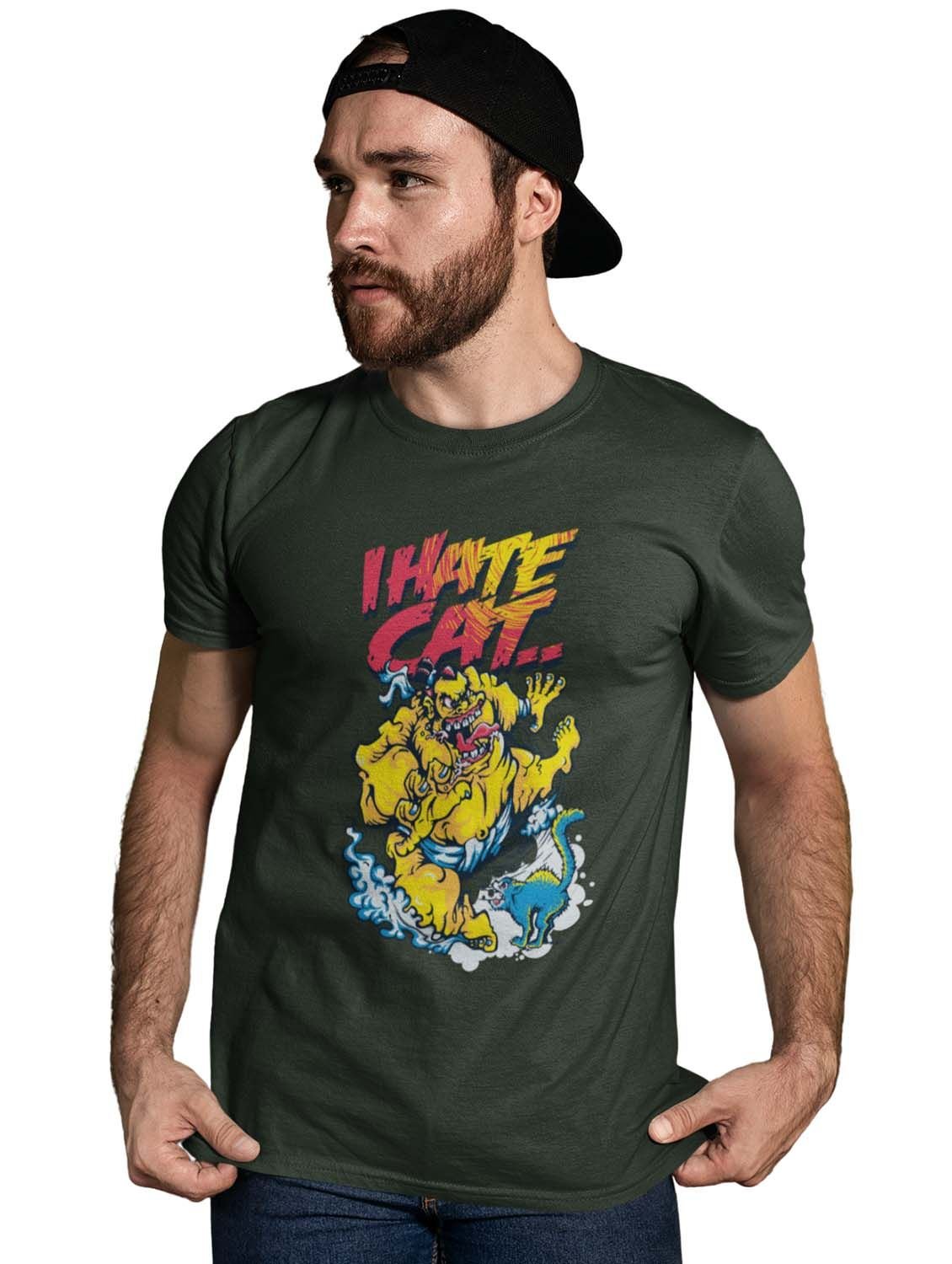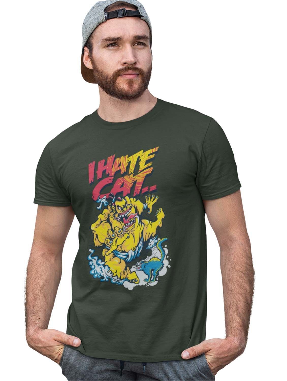 Cat Lover Green Round Neck Cotton Half Sleeved T-Shirt with Printed Graphics