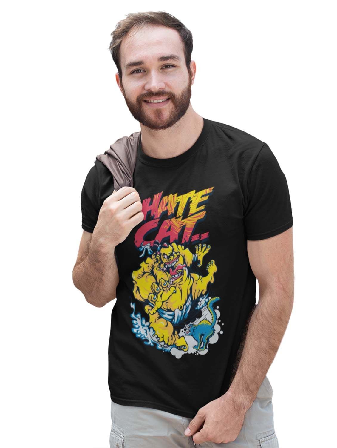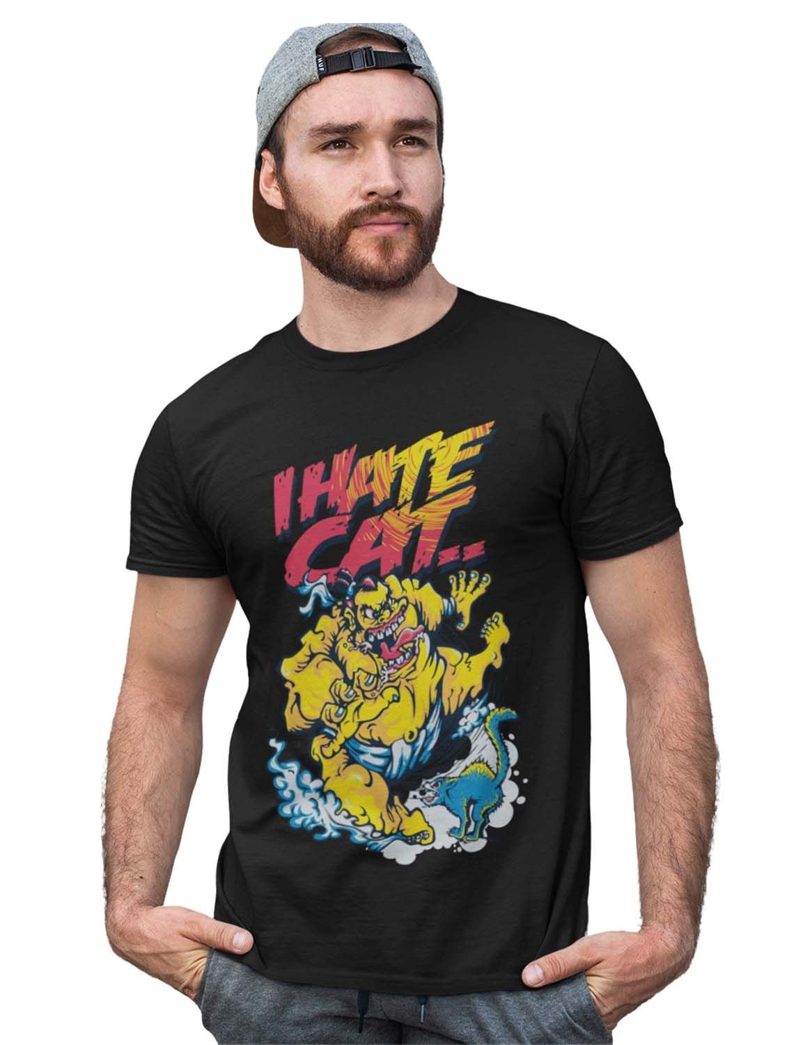 Cat Lover Black Round Neck Cotton Half Sleeved T-Shirt with Printed Graphics