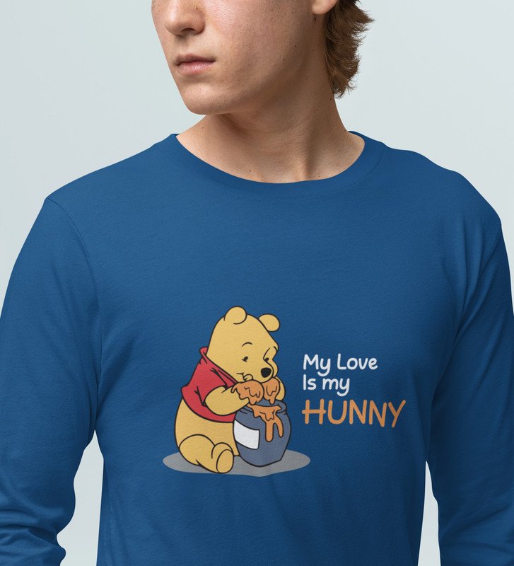 I Love Honey: Printed (blue) Full Sleeve T-Shirt For Singles