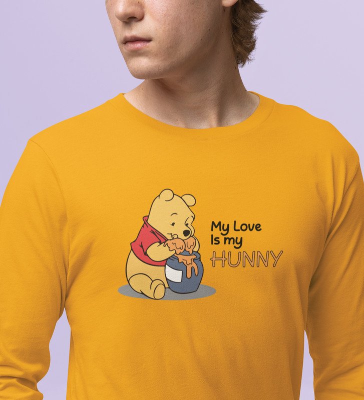I Love Honey: Printed (yellow) Full Sleeve T-Shirt For Singles
