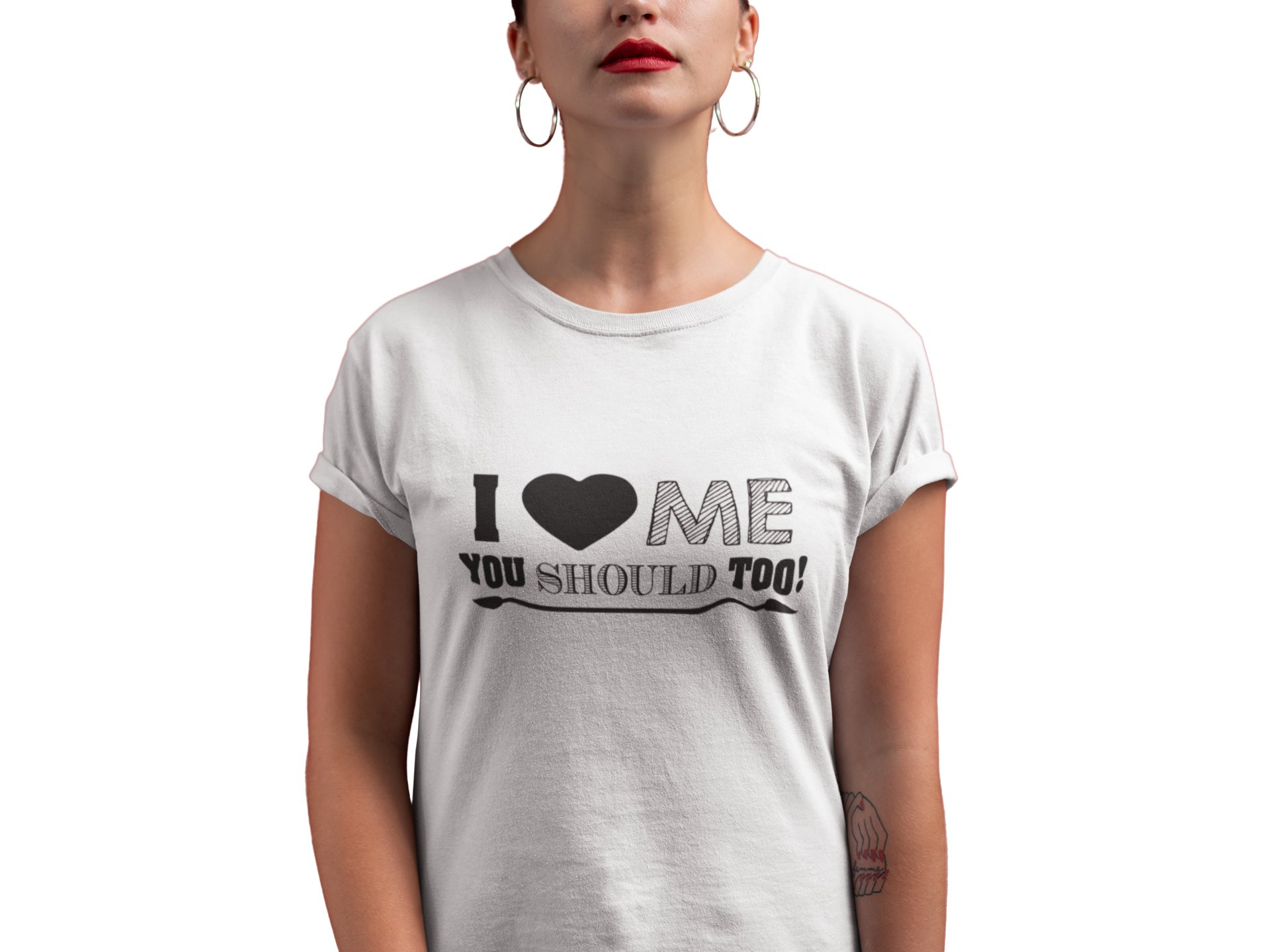 I love me-printed family themed cotton blended half-sleeve t-shirts made for women (white)