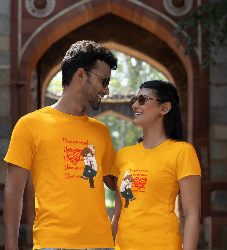 I Love You Man/I Love You My Girl Printed Couple (Yellow) T-shirts