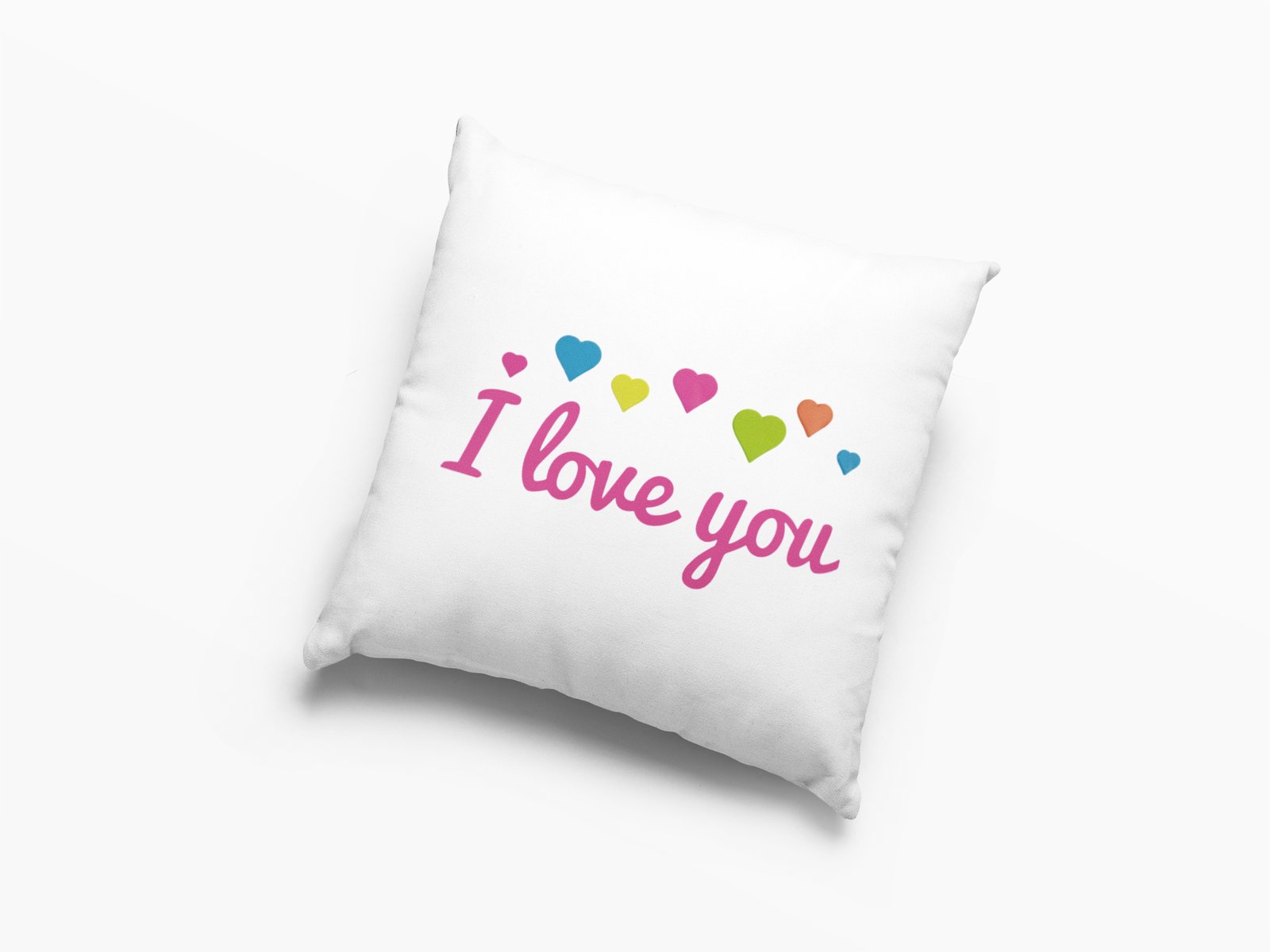 I Love You Text With Colourfull Hearts -Printed Pillow Covers For (Pack Of Two)