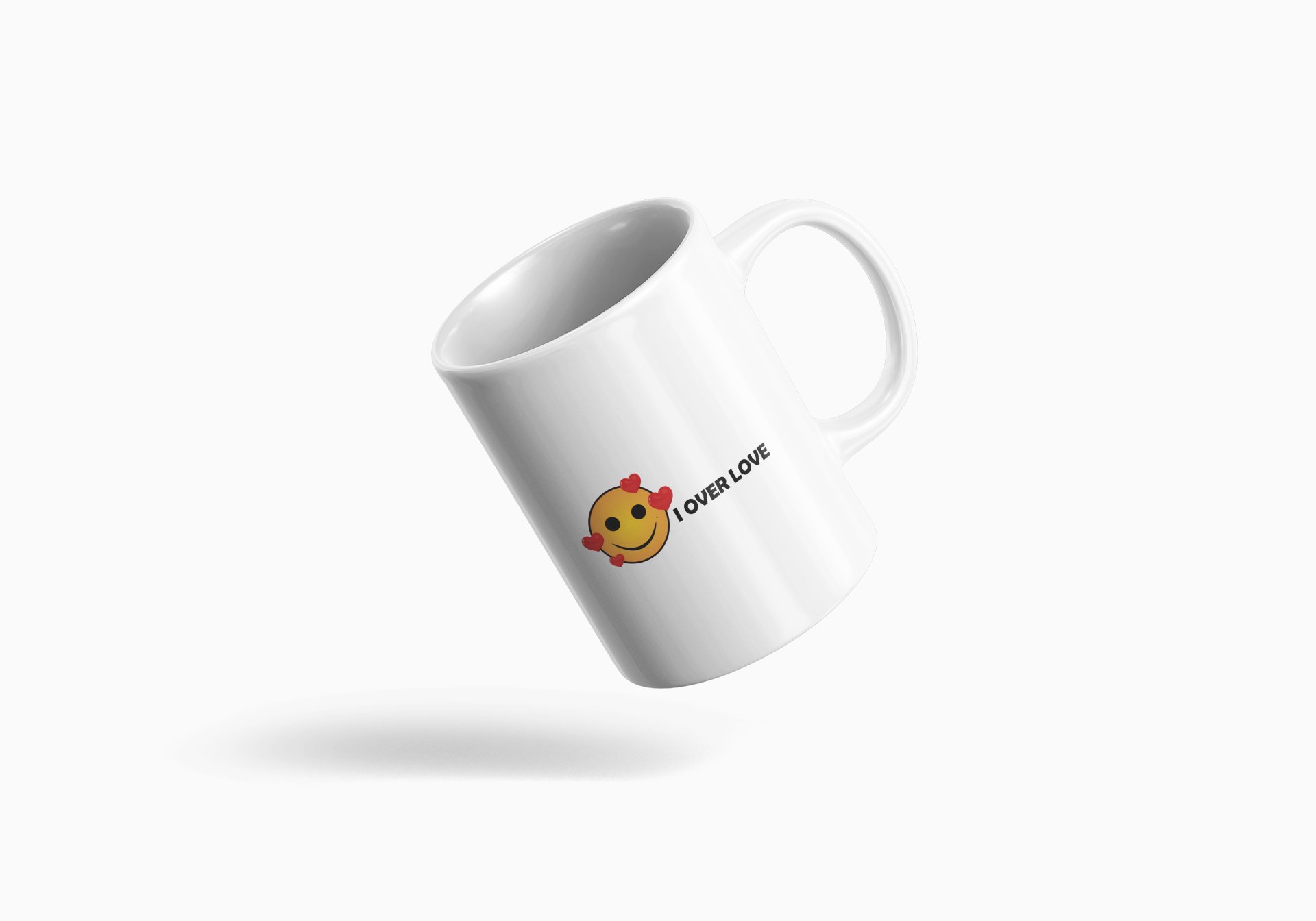 I Over Love & Emoji - emoji printed ceramic white coffee and tea mugs/ cups for emoji lover people