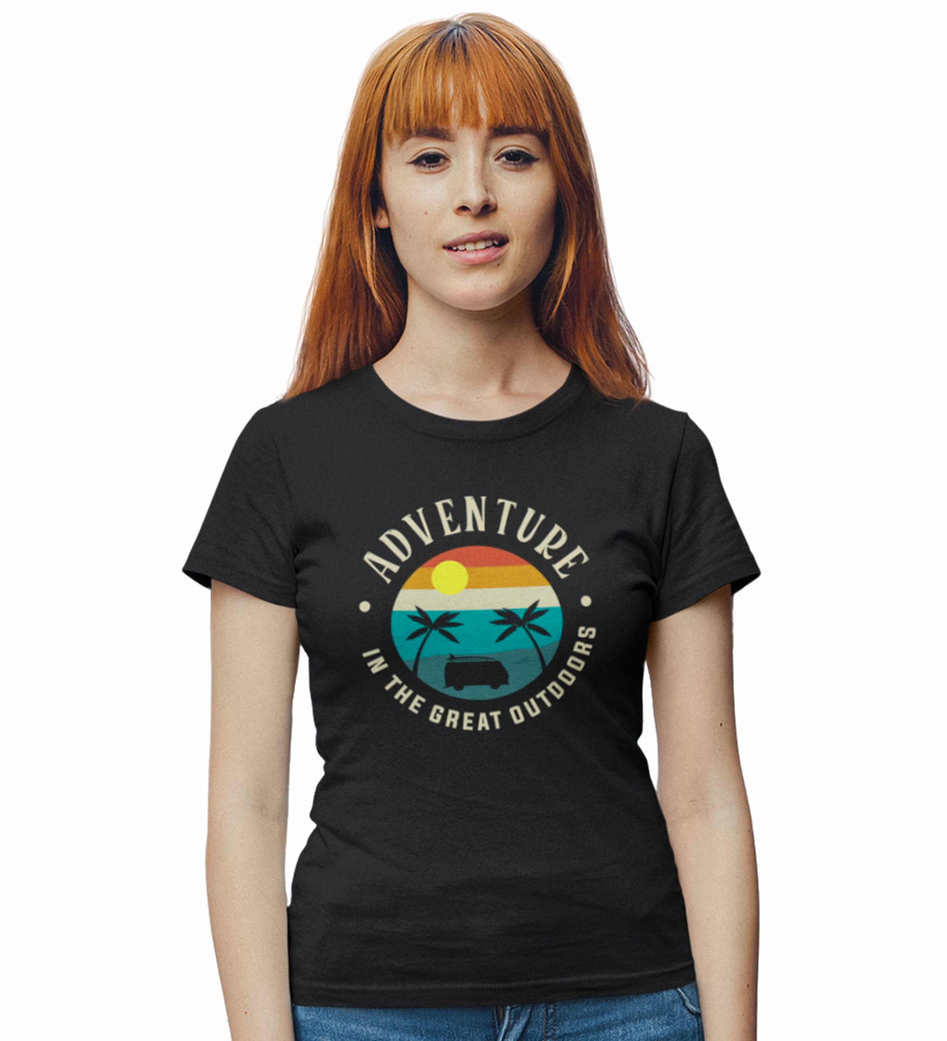 HopOfferGreat Outdoors Black Round Neck Cotton Half Sleeved Women's T-Shirt with Printed Graphics