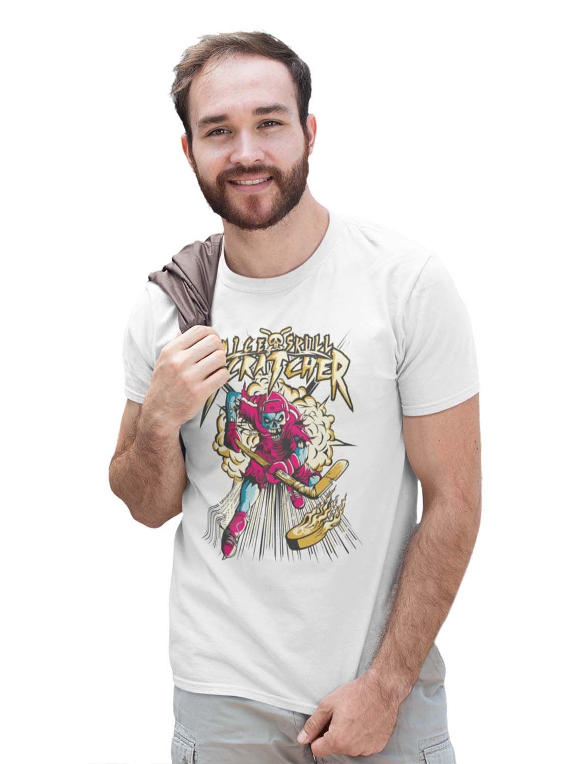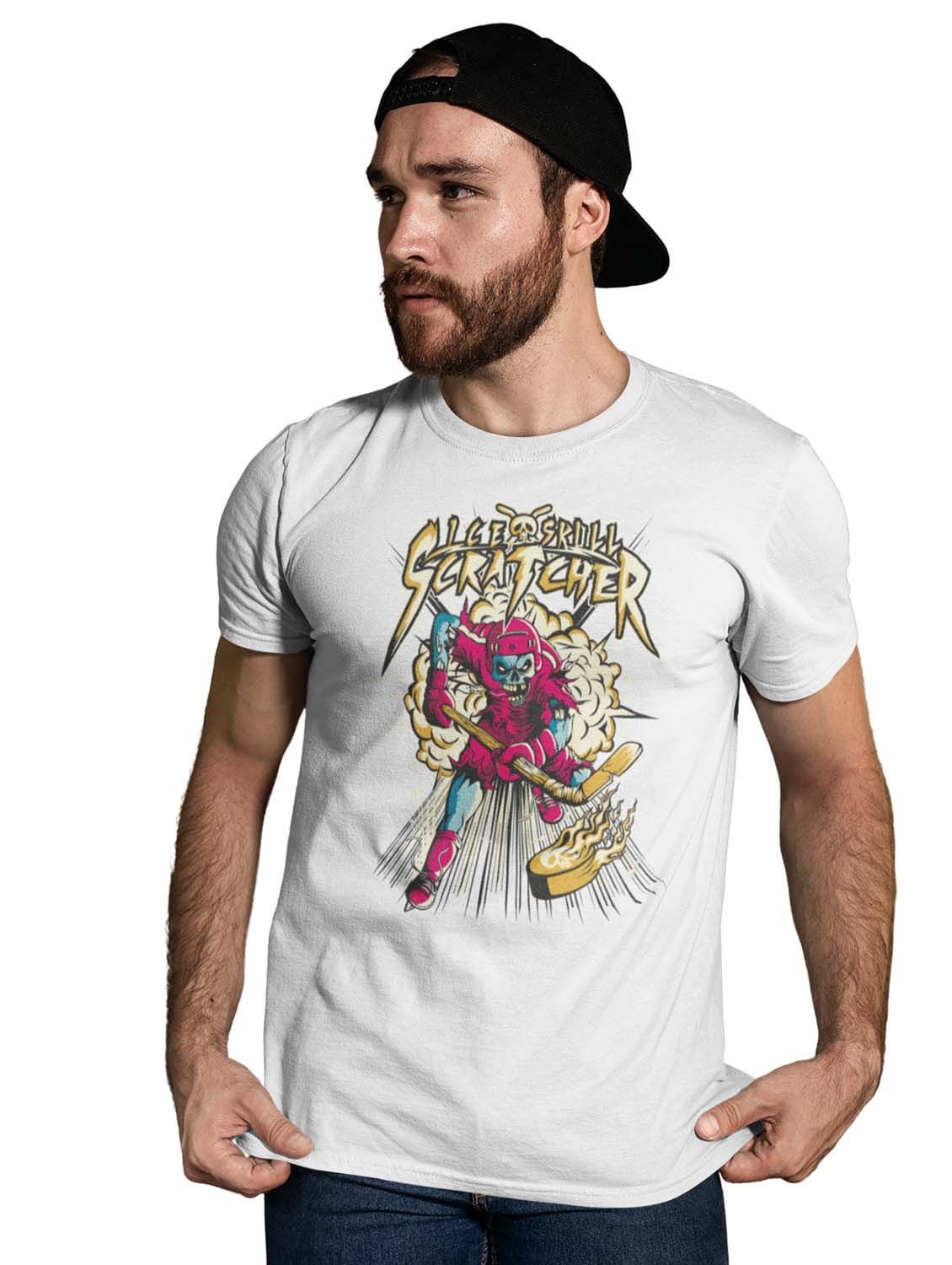 Skull Ice Hockey White Round Neck Cotton Half Sleeved T-Shirt with Printed Graphics