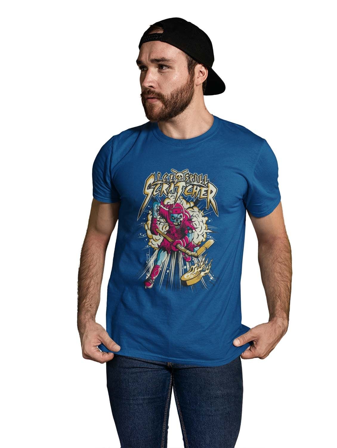 Skull Cowboy Blue Round Neck Cotton Half Sleeved T-Shirt with Printed Graphics