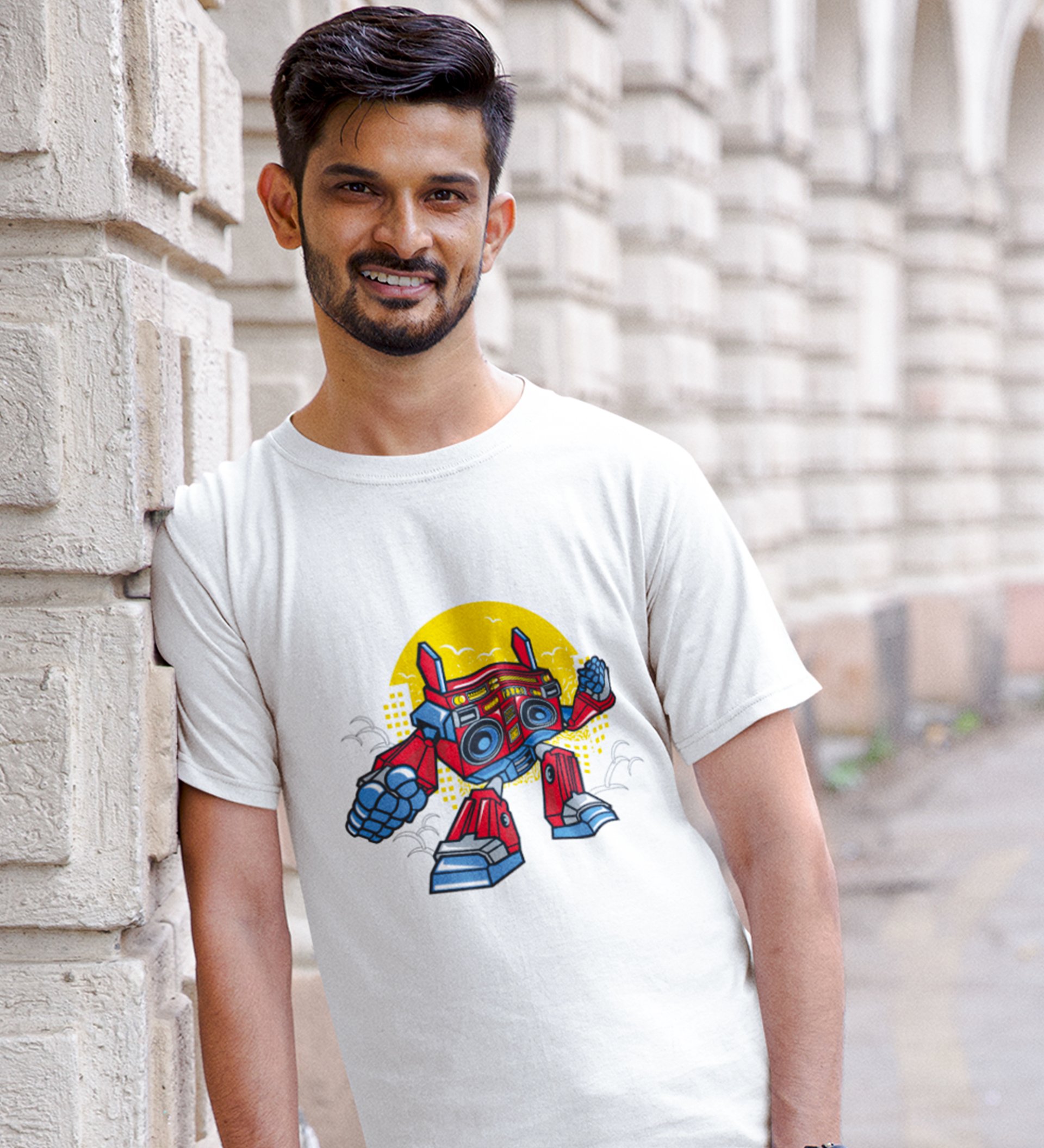 Radio White Round Neck Cotton Half Sleeved Men's T-Shirt with Printed Graphics