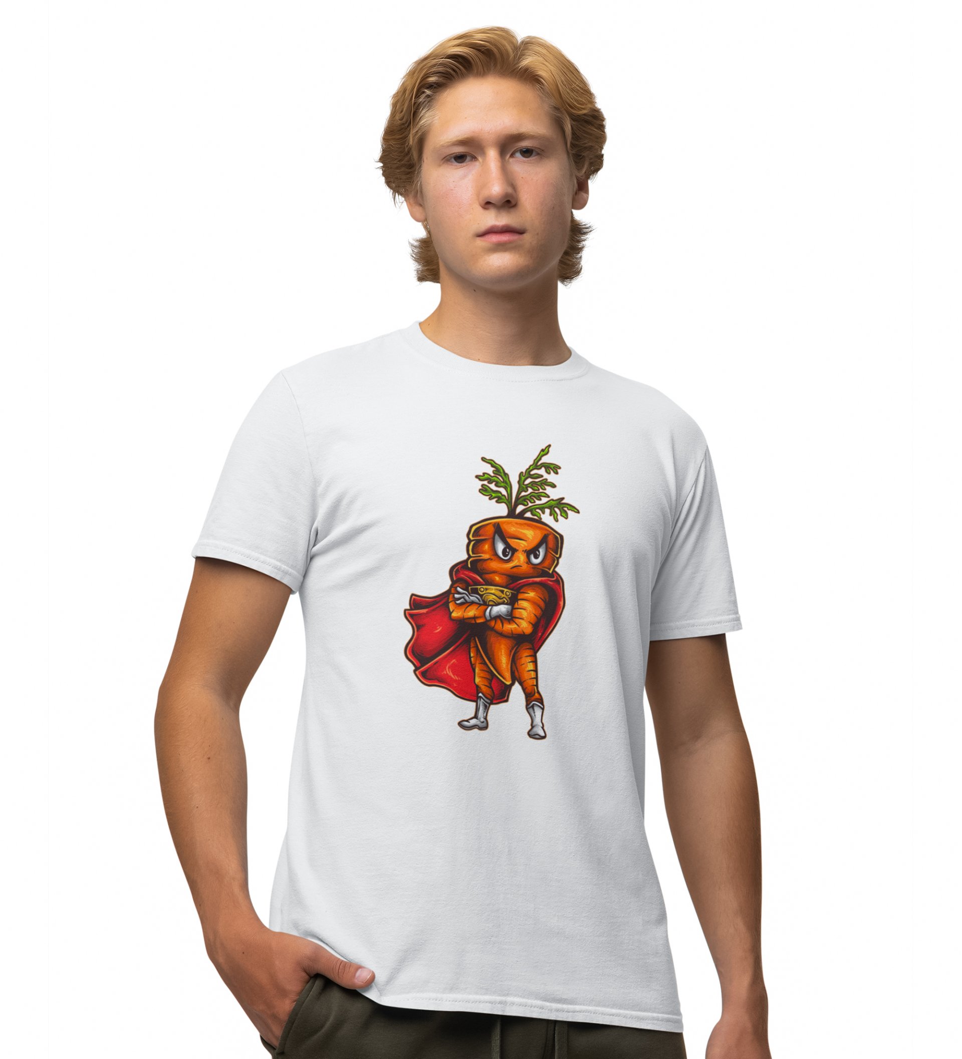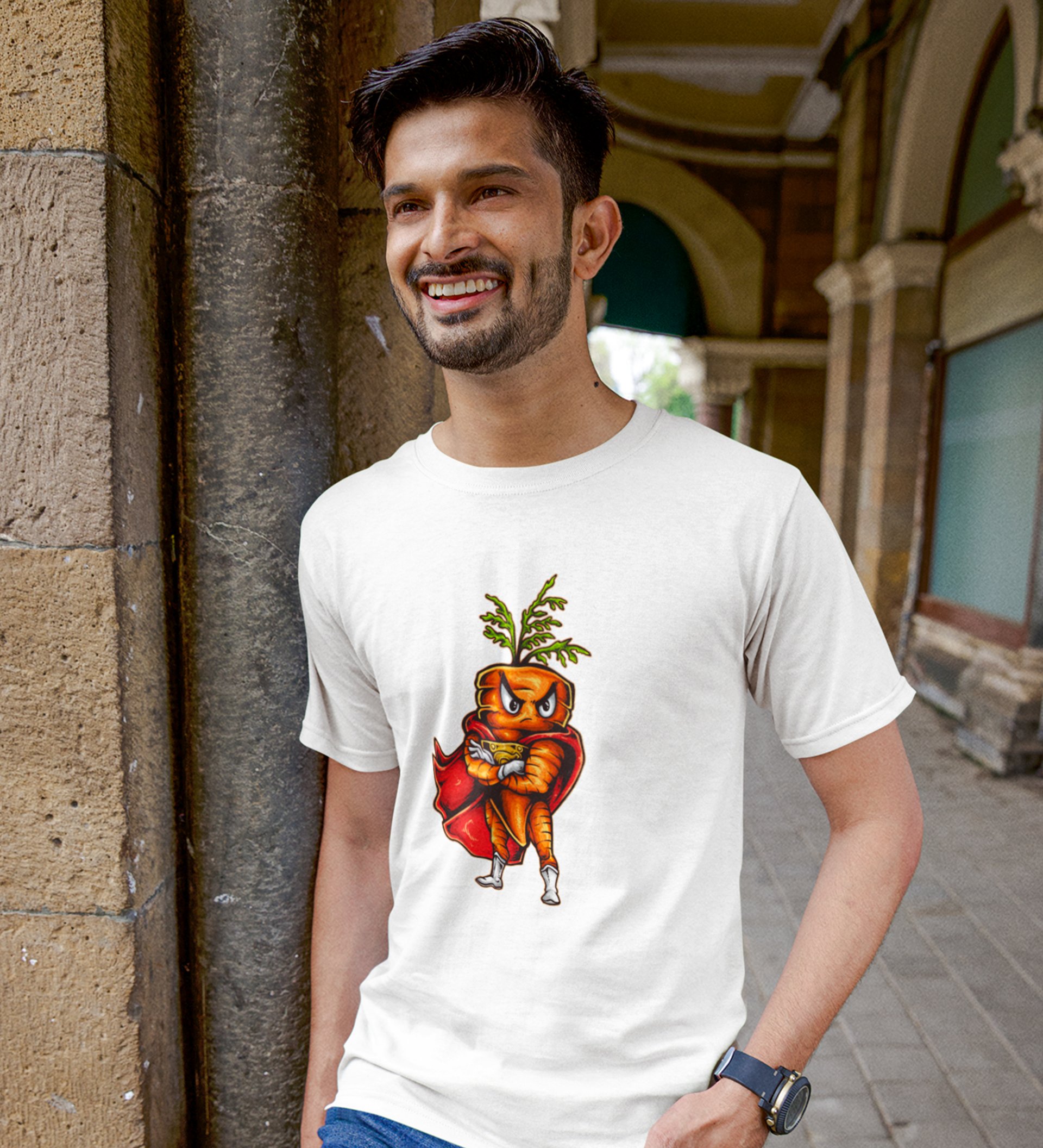 Super Carrot White Round Neck Cotton Half Sleeved Men's T-Shirt with Printed Graphics