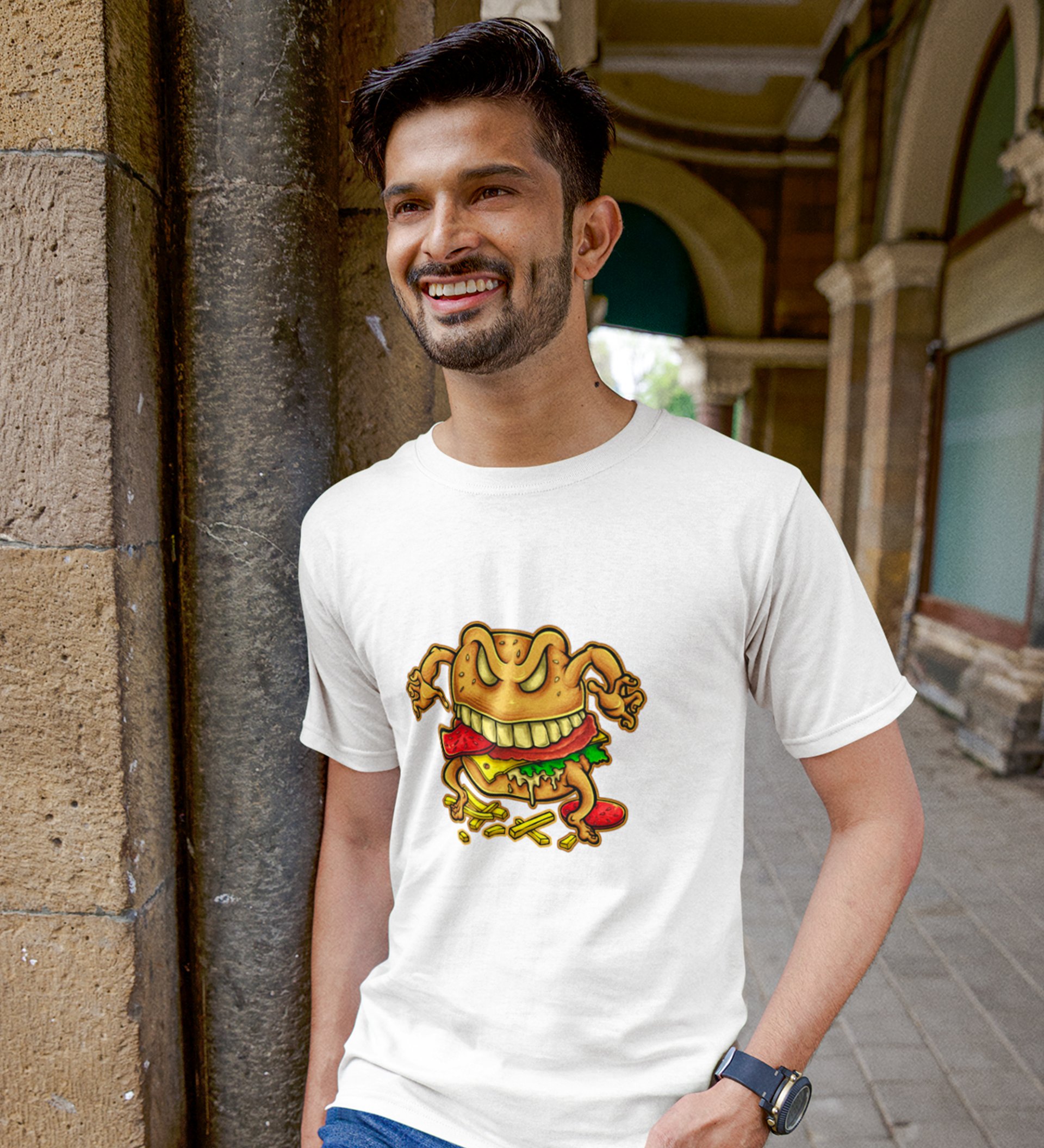 Evil Burger White Round Neck Cotton Half Sleeved Men's T-Shirt with Printed Graphics
