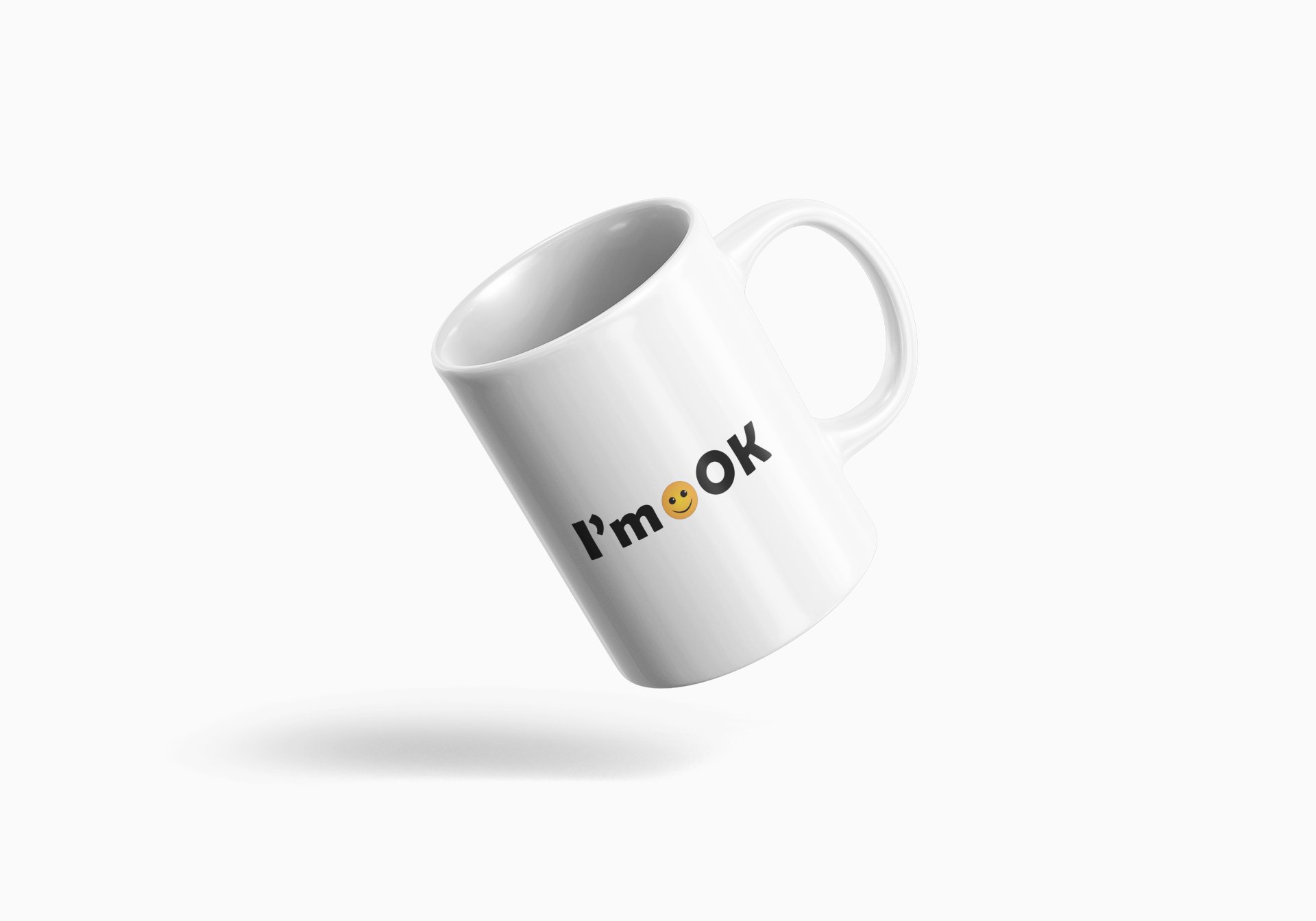 I'm OK in Text- emoji printed ceramic white coffee and tea mugs/ cups for emoji lover people