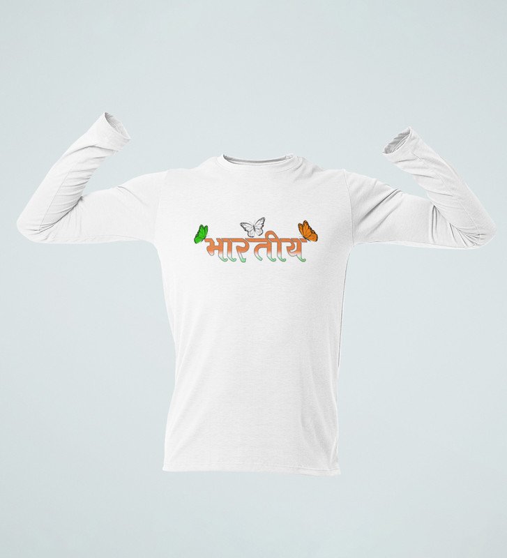Indian Glory White Round Neck Printed Full Sleeve T-shirts For Boys & Mens