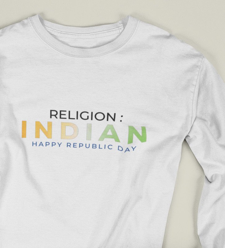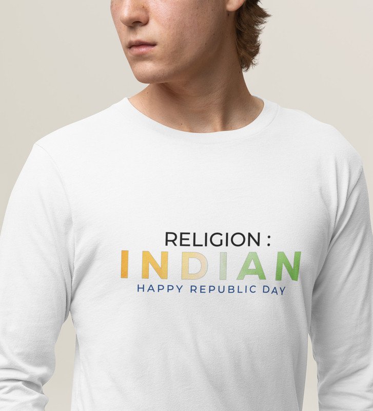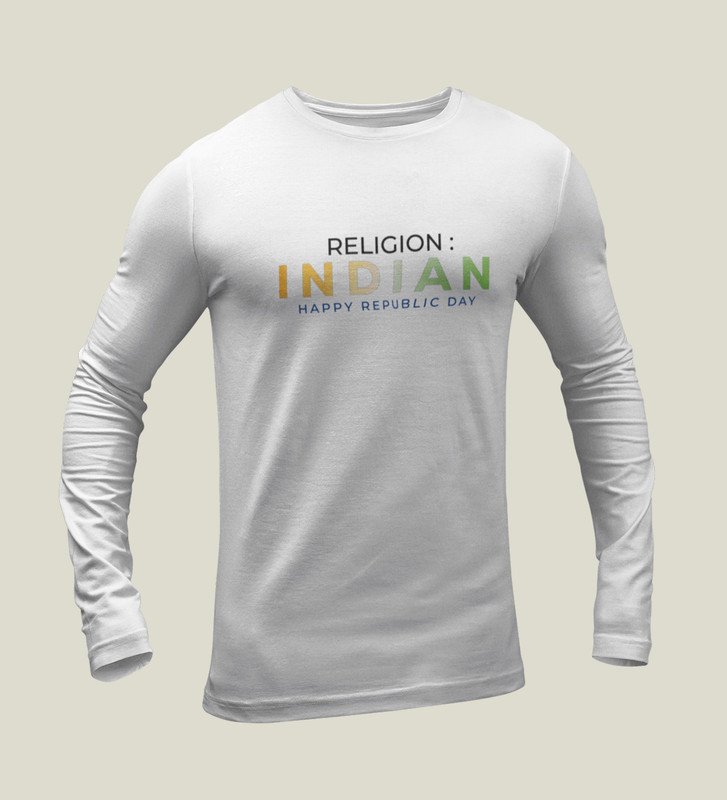 Indian Religion White Round Neck Printed Full Sleeve T-shirts For Men