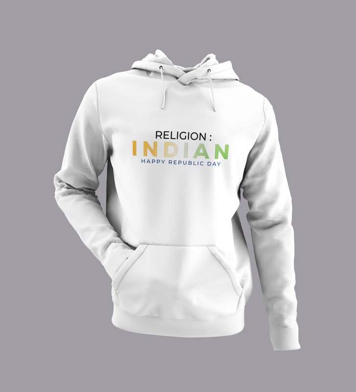 Indian Religion White Round Neck Printed Hoodies For Men