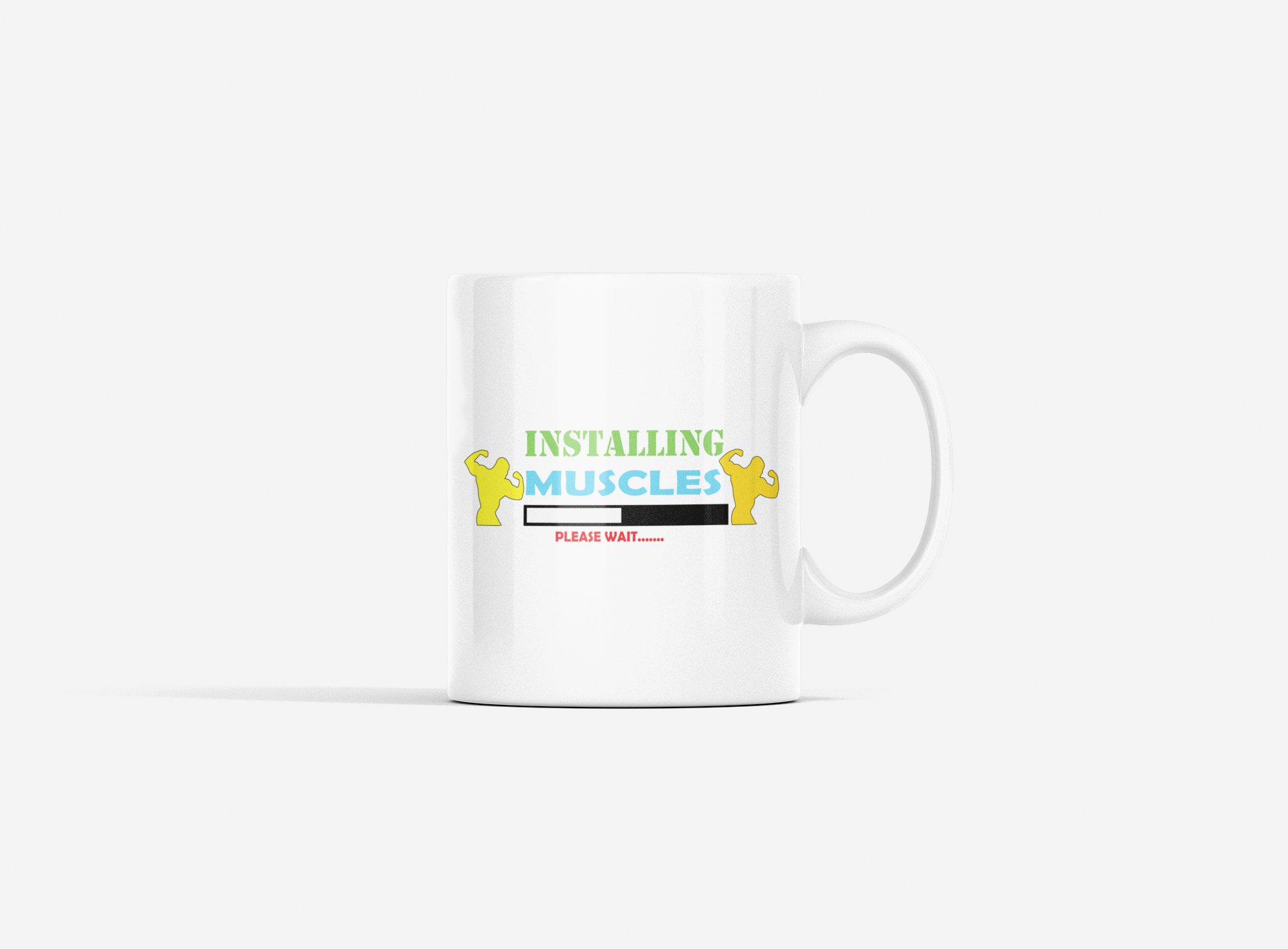 Installing Muscles, Please Wait, (BG Green Blue and Red) - gym themed printed ceramic white coffee and tea mugs/ cups for gym lovers