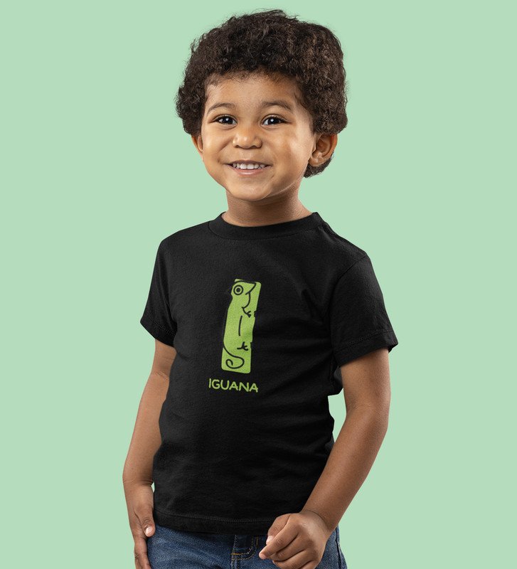 Intelligent Iguana, Boys Printed Crew Neck Tshirt (Black)