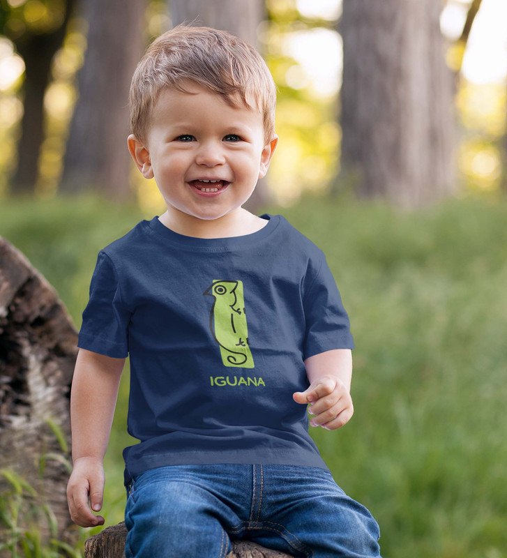 Intelligent Iguana, Boys Printed Crew Neck tshirt (Navy blue)